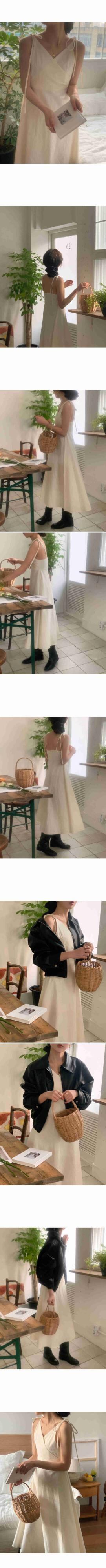 [EWQ] クロス V ネック弓スリング ドレス無地ノースリーブ ドレス夏 Vestido 16Y7810 リボン サマー 夏物 Vネック ソリッドカラー