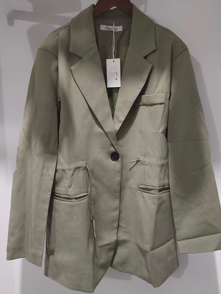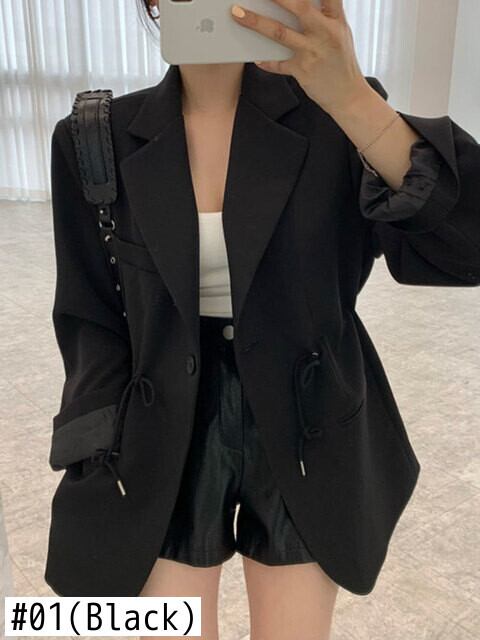 【EWQ】ミニマリスト トレンド アウター 長袖 ドローストリング ルーズ ジャケット シック ブラック コート 春 ロング スプリング 春物