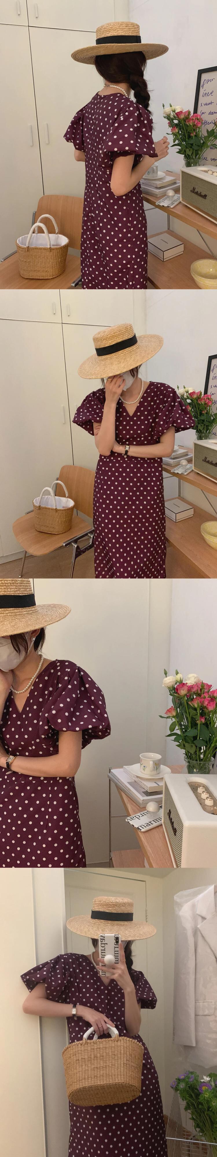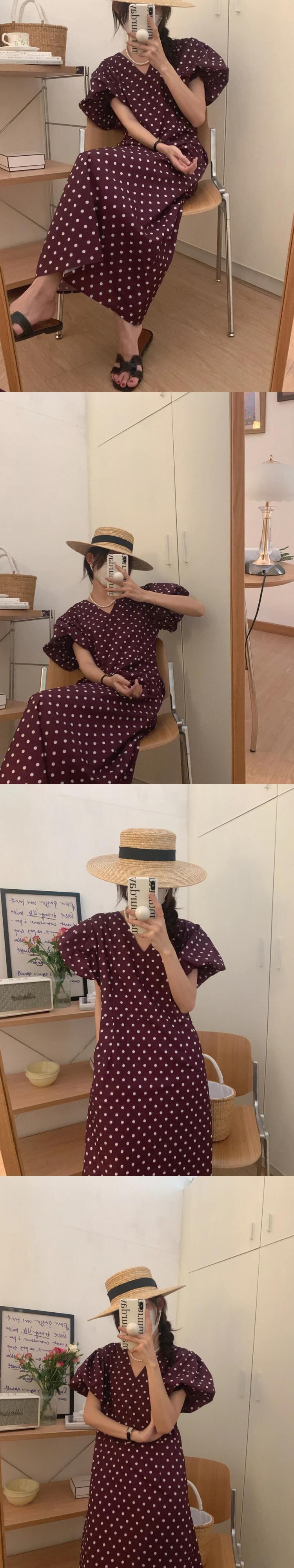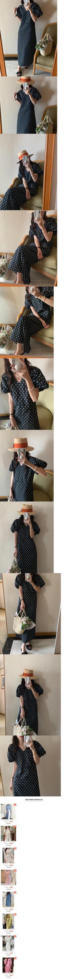 [EWQ] V ネック コントラスト ポルカ ドット ドレスバック スプリット パフ スリーブ ドレス夏ルーズ Vestido 7260 サマー 夏物 Vネック