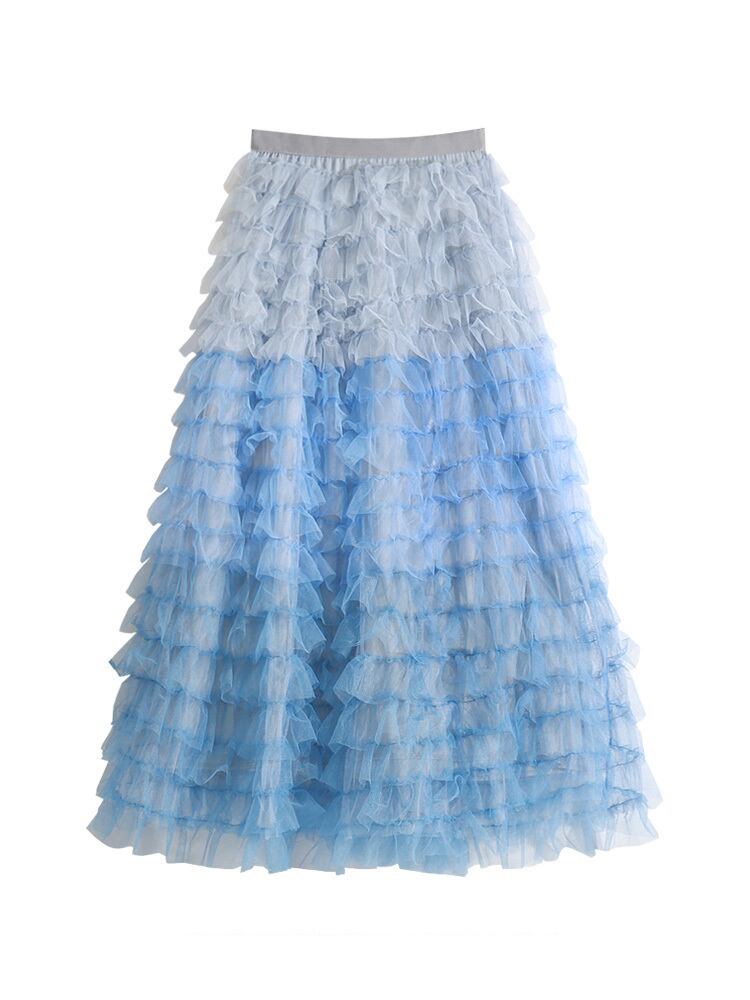 【EWQ】プリーツ コントラストカラー メッシュスカート キレイめAラインスカート 春夏 パープル ファルダス 6Y6272 スプリング 春物 サマー 夏物