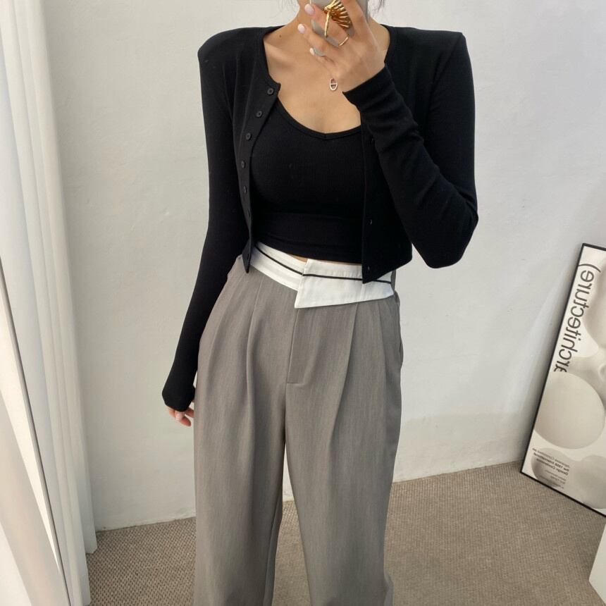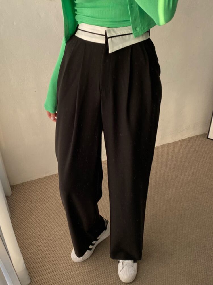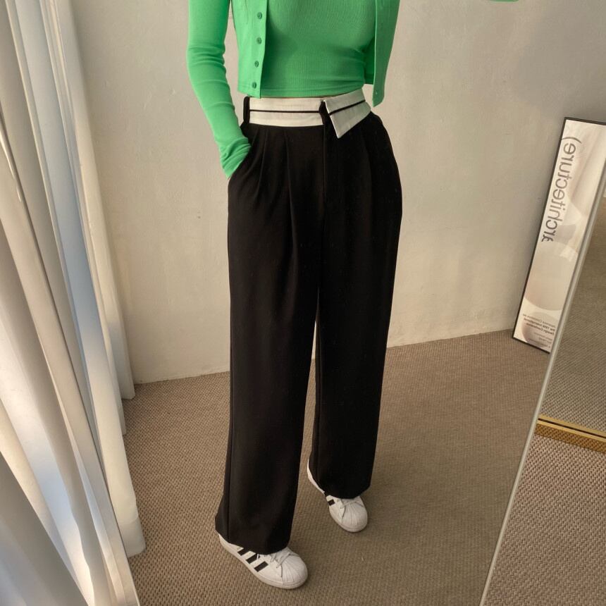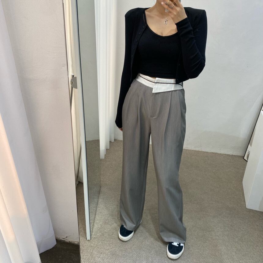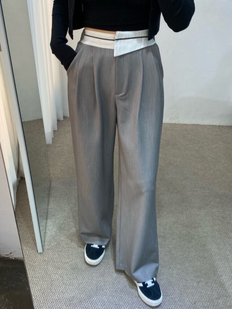 [EWQ] イレギュラー パッチワーク パンツ レディース ウエスト プリーツ ワイドレッグ パンツ 春 夏 潮 16Y7678 スプリング 春物 サマー 夏物 ワイドパンツ