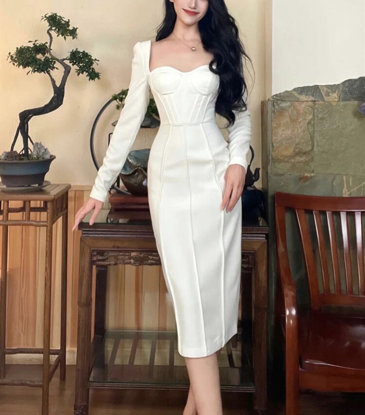 [EWQ] スプリング パッチワーク スクエアカラー ボディコン ドレス レディース ブラック ドレス レディース 16R3011 春物 スクウェア
