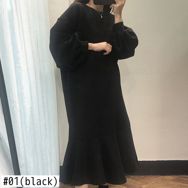 [EWQ] 秋 O ネック ランタン スリーブドレス ルーズ ミッドレングス スウェットシャツ ドレスピンク ロング ローブ 16Y4013 ランタンスリーブ オータム 秋物 Oネック
