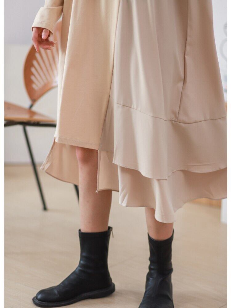 [EWQ] イレギュラードレス巾着パッチワークドレス春秋 O ネック Vestido Rode 6Y6441 スプリング 春物 オータム 秋物 Oネック