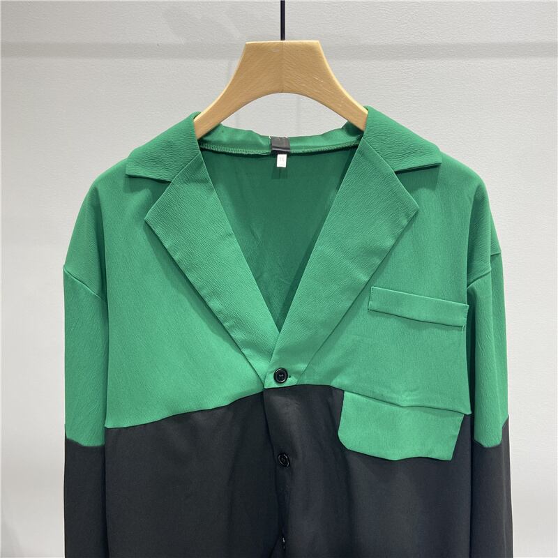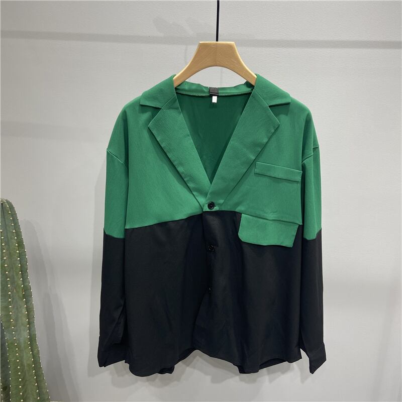 [EWQ] レディース コントラストカラー 長袖シャツ パッチワーク ラプル ワンボタン ブラウス トップス 春 秋 潮 16Y7823 ロング スプリング 春物 オータム 秋物