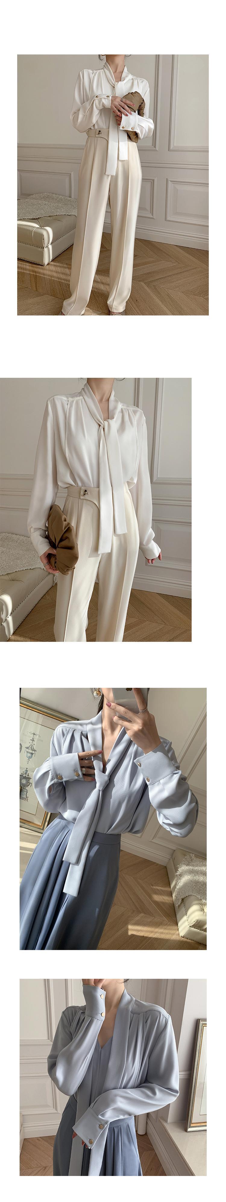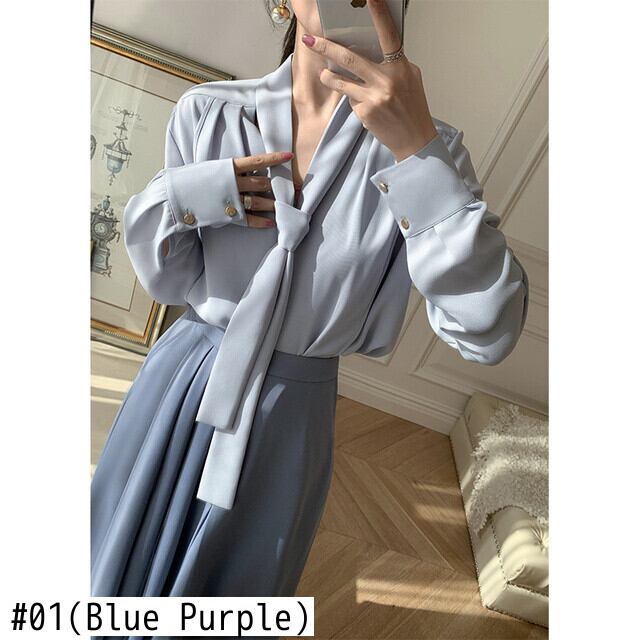 【EWQ】able レースアップ Vネック ブラウス 無地 ソロスプライシング 長袖 レディース シャツ 春 秋 潮シャツ トップス 16Y ロング スプリング 春物 オータム 秋物 ソリッドカラー