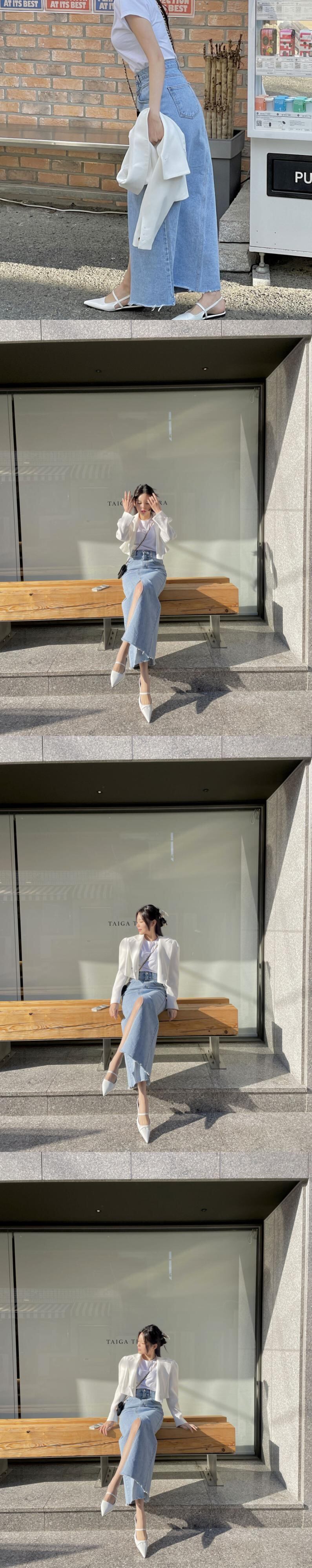[EWQ] レディース スプリット ブルー デニム スカート ポケット ウエスト ミッドカーフ スカート サマー ファルダス 6Y7551 夏物
