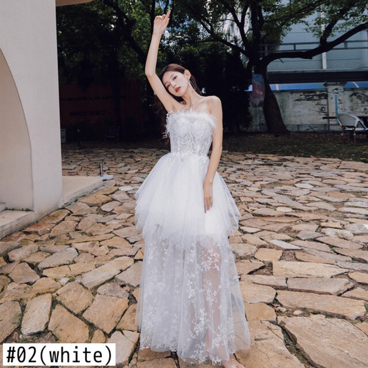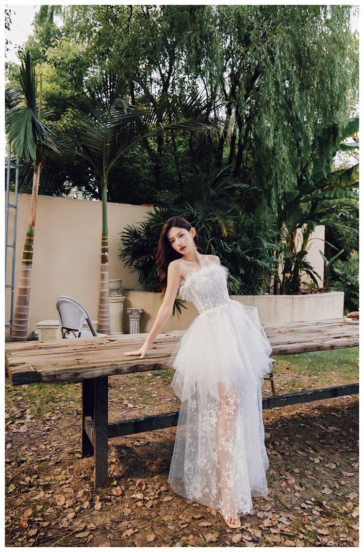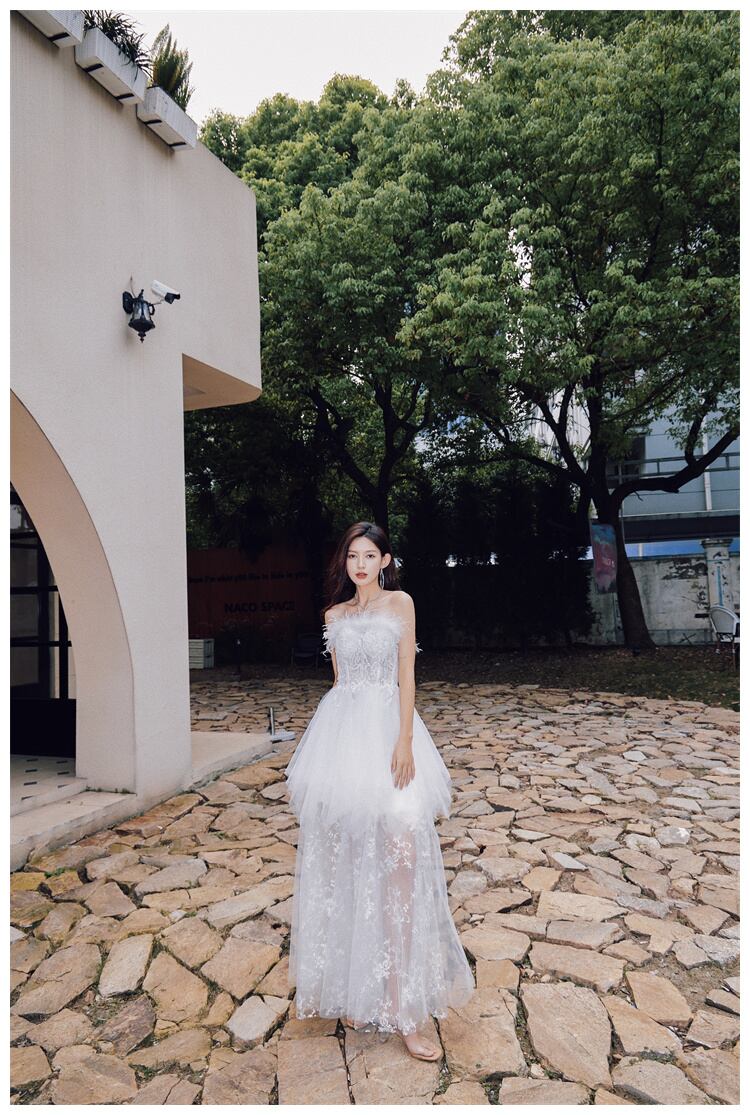 [EWQ] ストラップレスドレスイブニングパーティーホリデー Vestido ドレス春夏羽レーススプライシングシック Rode 16Y6329 スプリング 春物 サマー 夏物