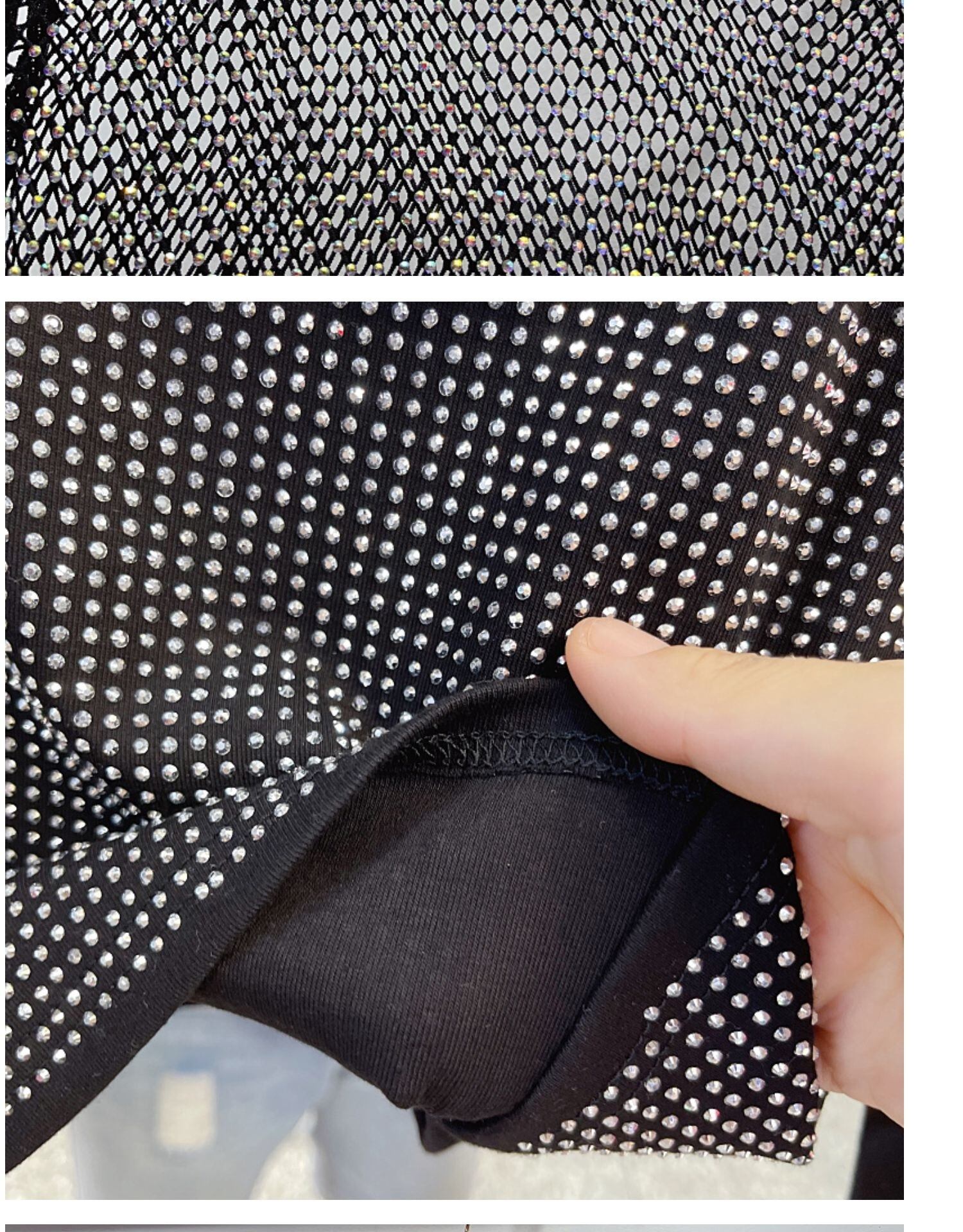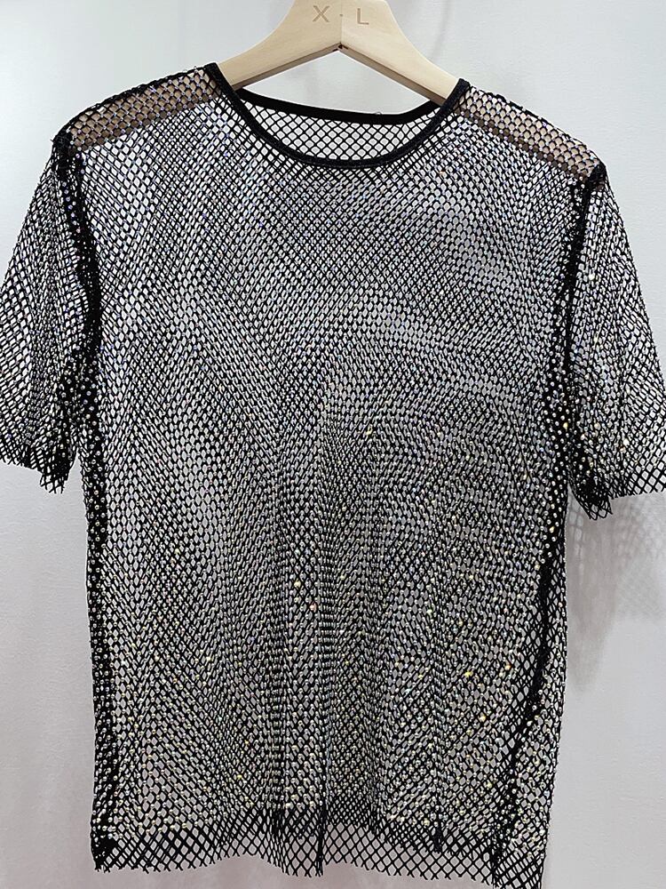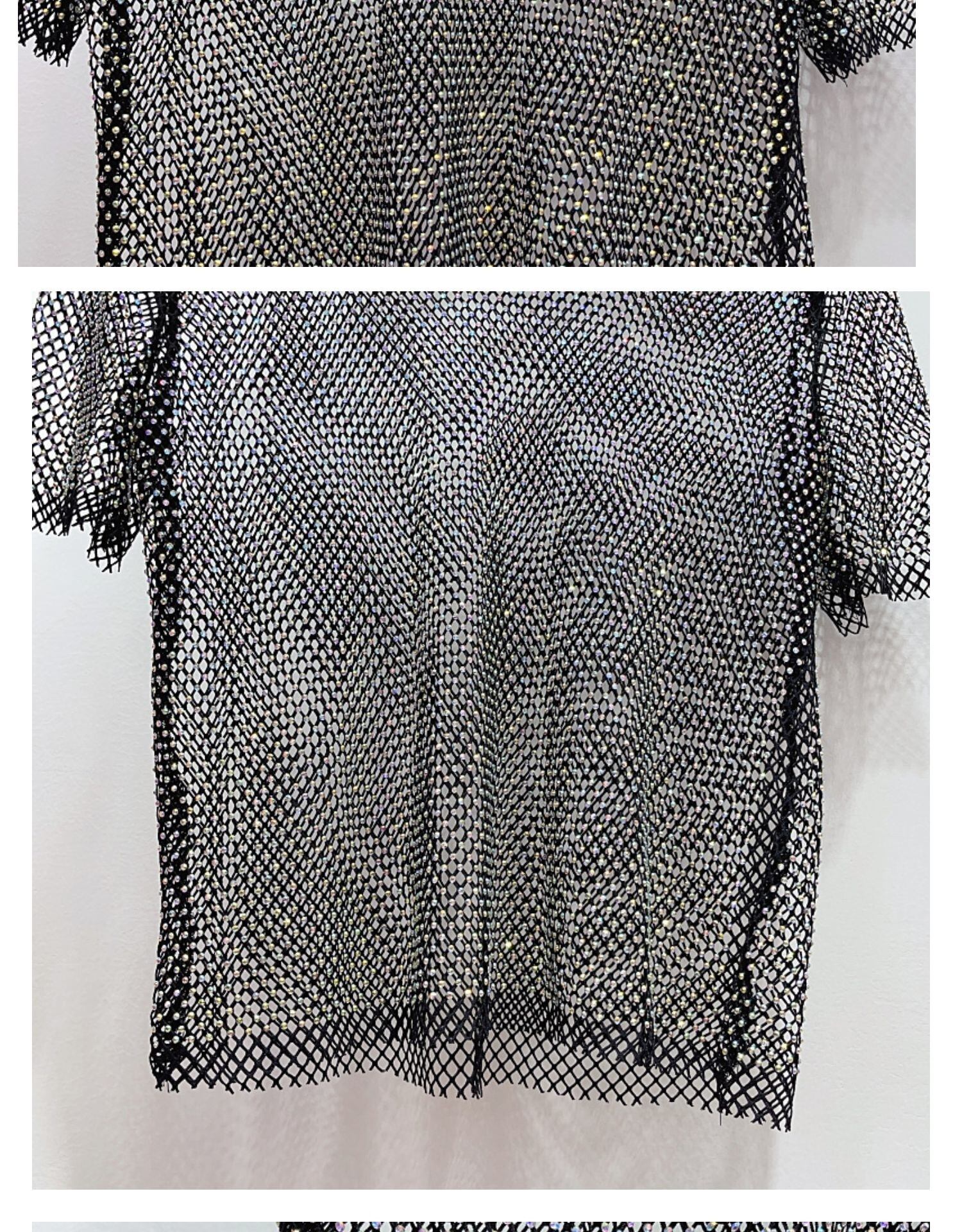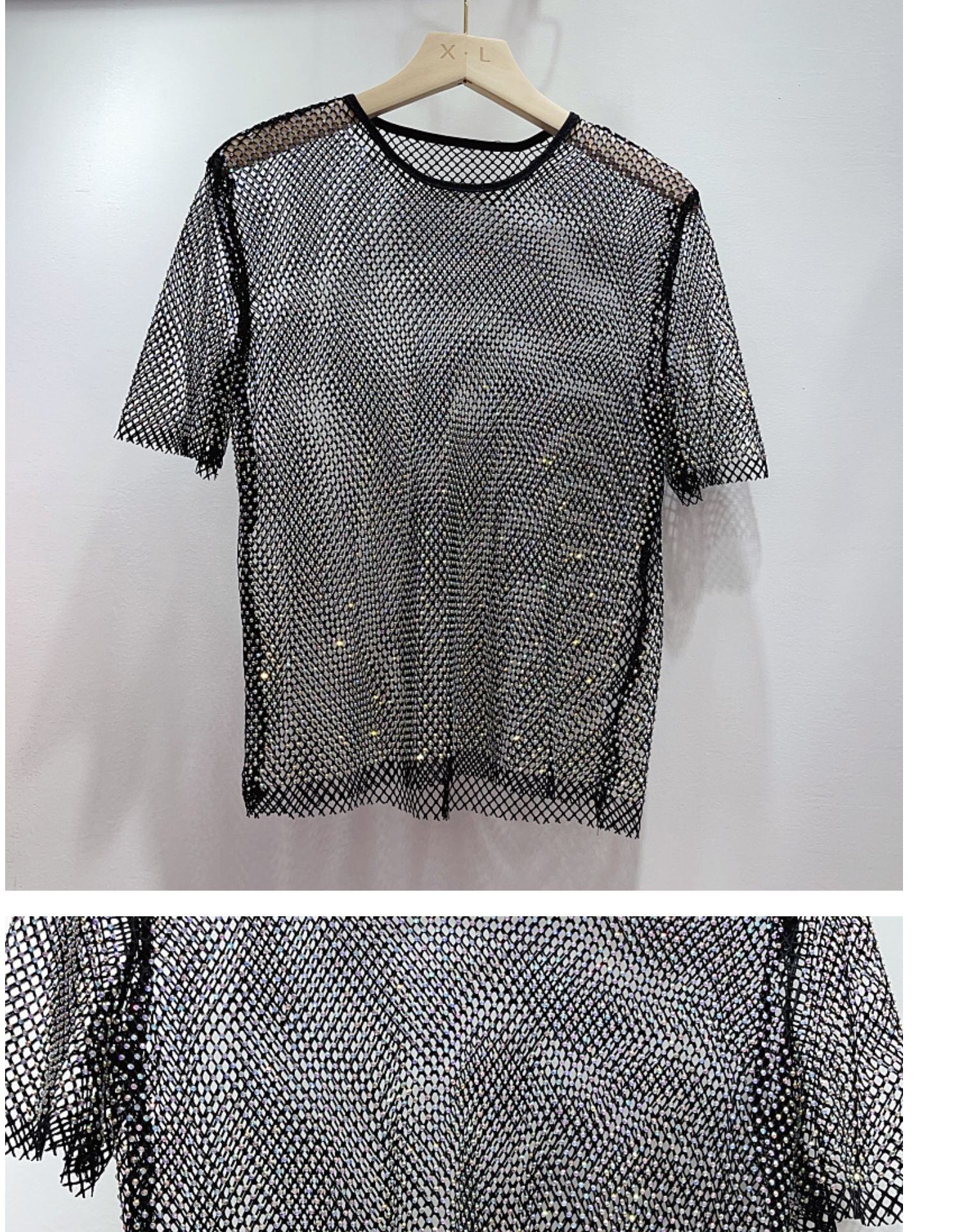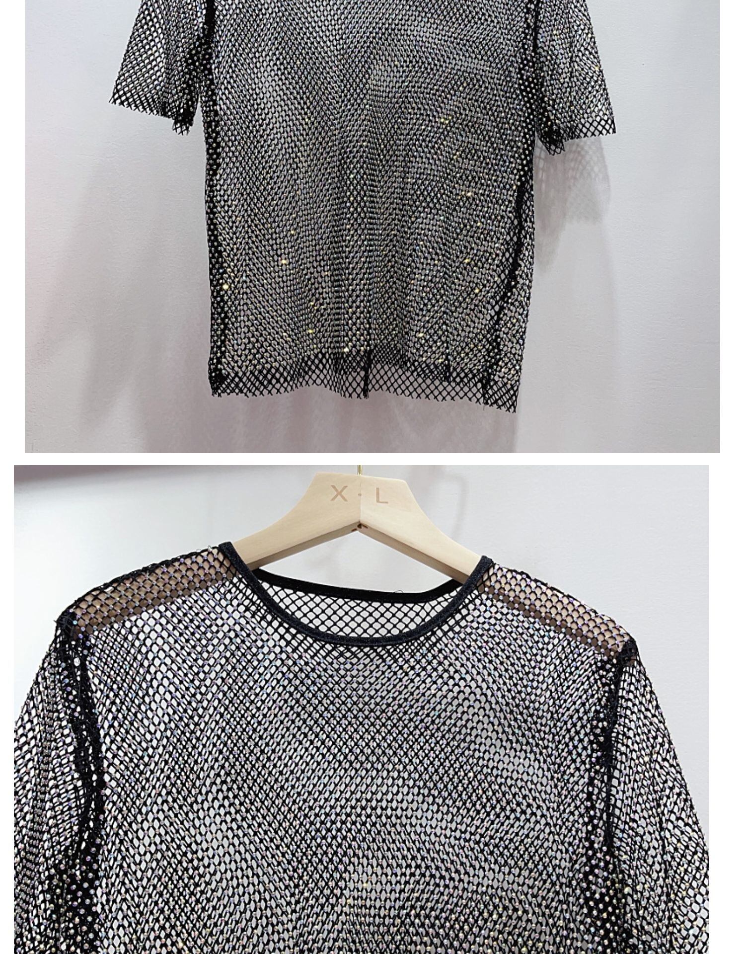 [EWQ] カラフル ダイヤモンド メッシュ 半袖 Tシャツ O ネック 中空 アウト コントラスト カラー パースペクティブ トップ セクシー トップ Tシャツ 16Y8067 ショート ハーフスリーブ Oネック