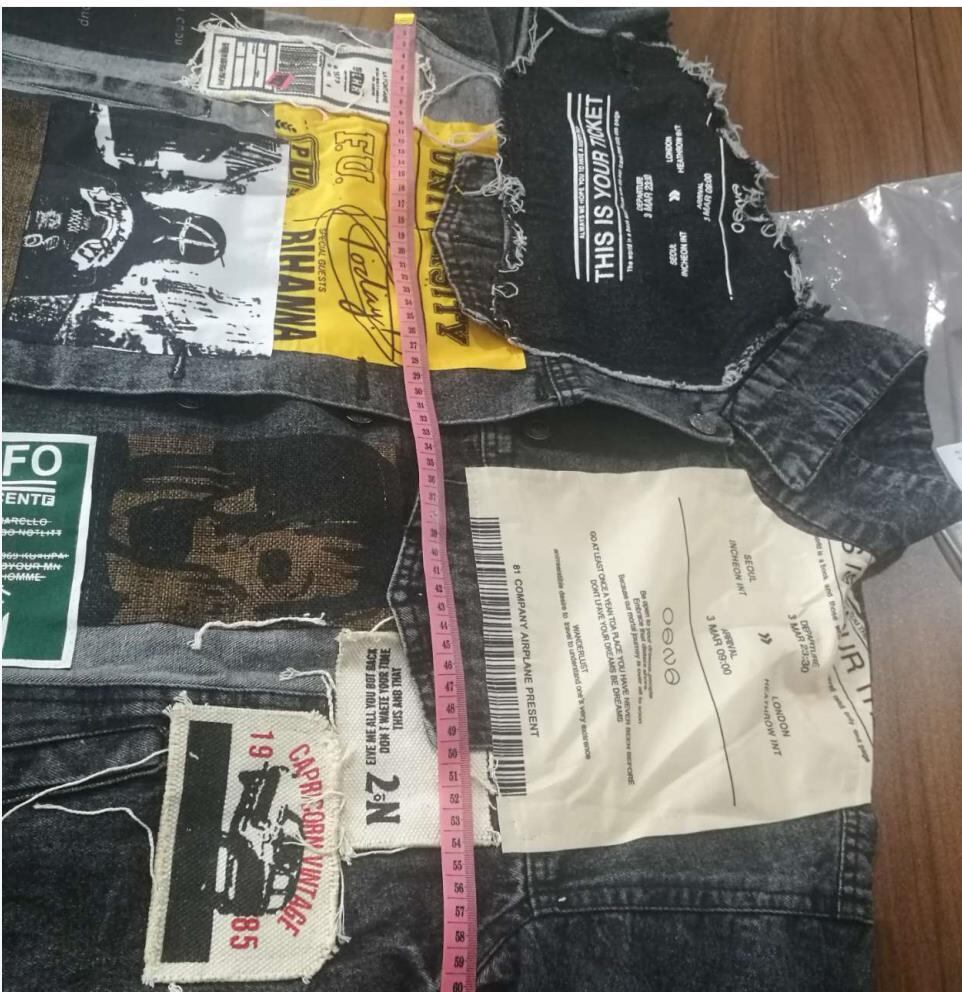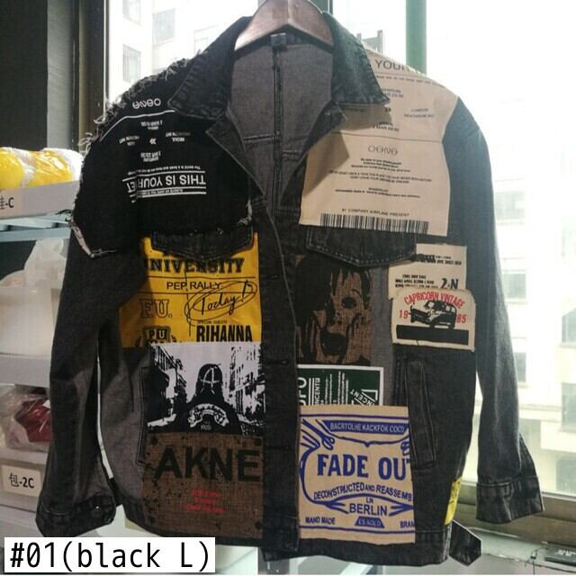 【EWQ】フルスリーブ アップリケ ペーパー柄 ルーズシック ブラック デニム ジャケット レジャー トレンド コート 春 QL14001 スプリング 春物