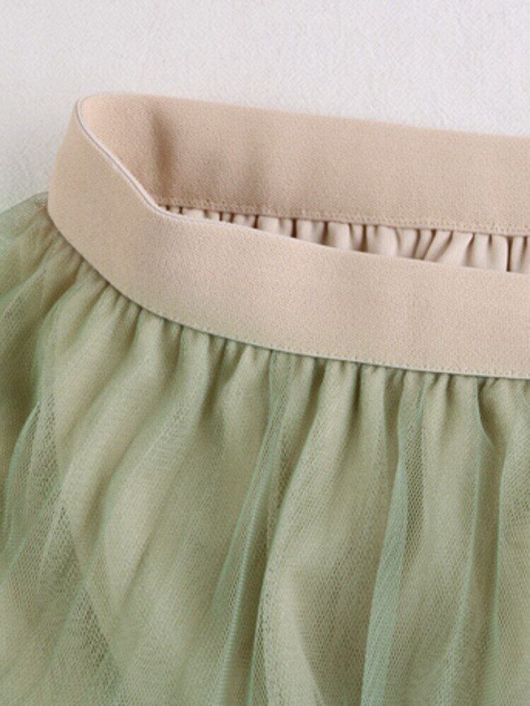 [EWQ] コントラスト プリーツ スカート弾性ウエスト メッシュ ミッドカーフ スカート春夏オールマッチ服 エラスティック 伸縮 スプリング 春物 サマー 夏物
