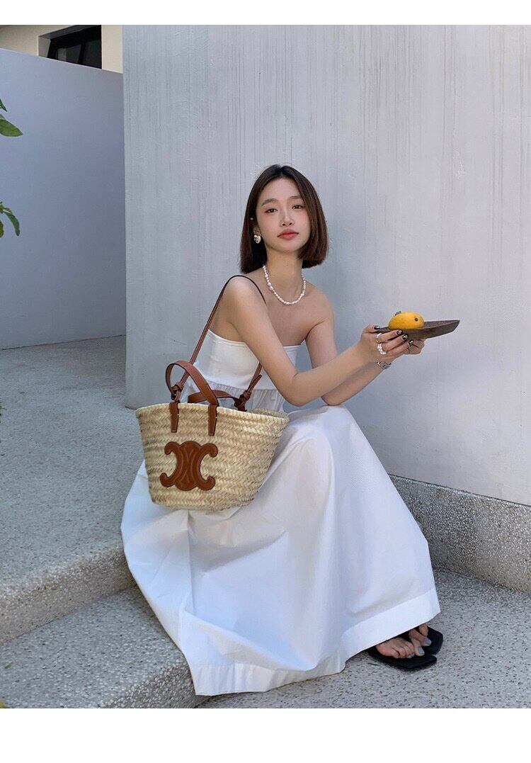 [EWQ] ストラップレス無地ドレス夏ノースリーブ A ライン ドレス プリーツ Vestido サマー 夏物 Aライン ソリッドカラー