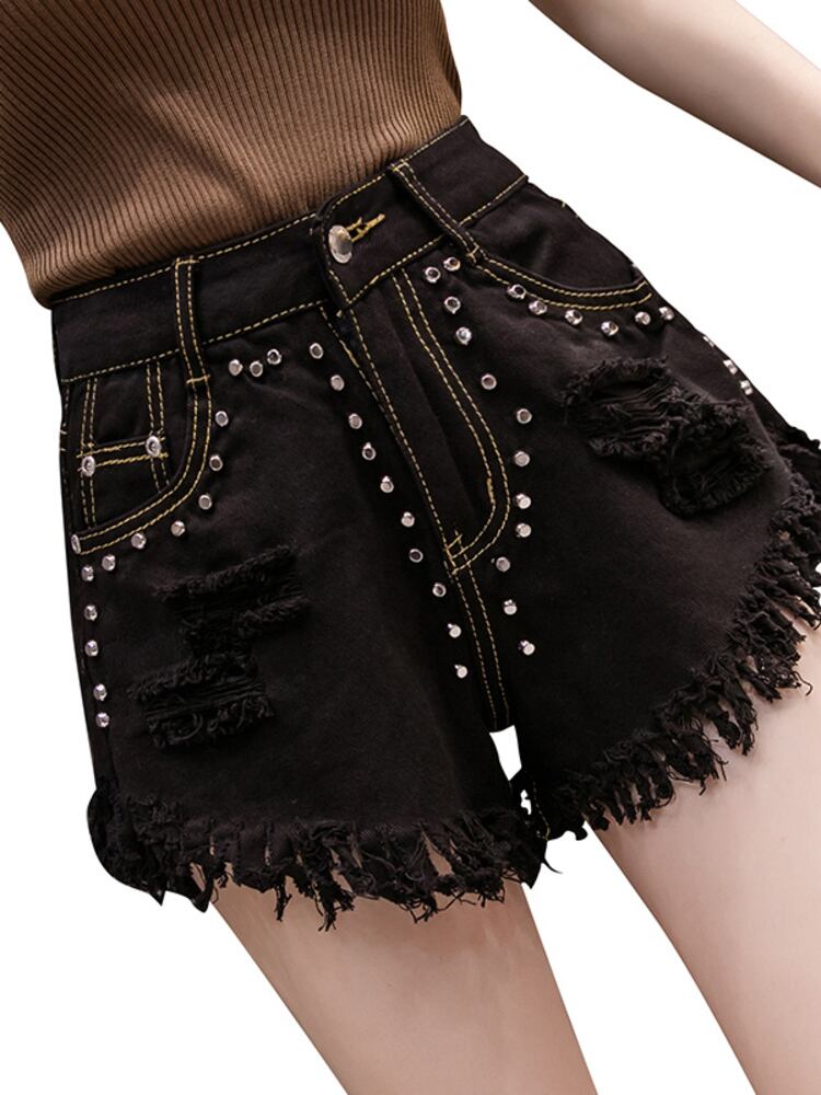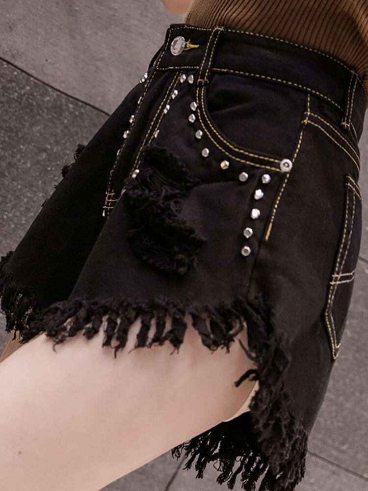 【EWQ】シックビーズスプライシングテルデニムショーツストリートポケットウエストショートジーンズパンツ春夏トレンド16Y6800 スプリング 春物 サマー 夏物 ブルマー