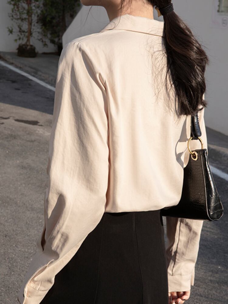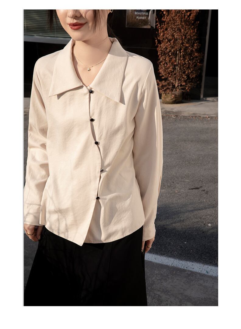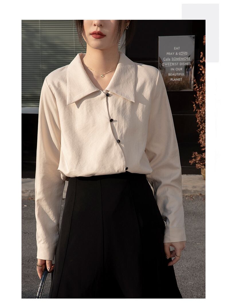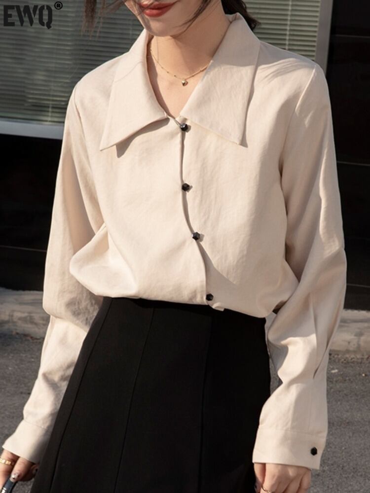 [EWQ] イレギュラー ロングスリーブ レディース シャツ 春秋トレンド シック シングルブレスト ブラウス アプリコット トップス 16Y6090 長袖 スプリング 春物 オータム 秋物