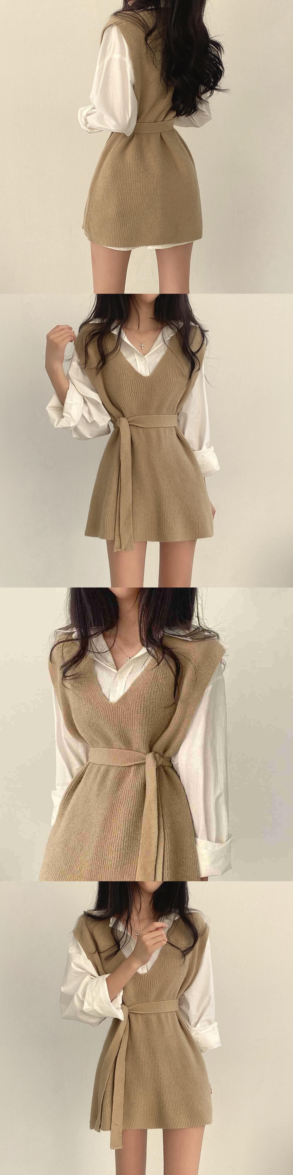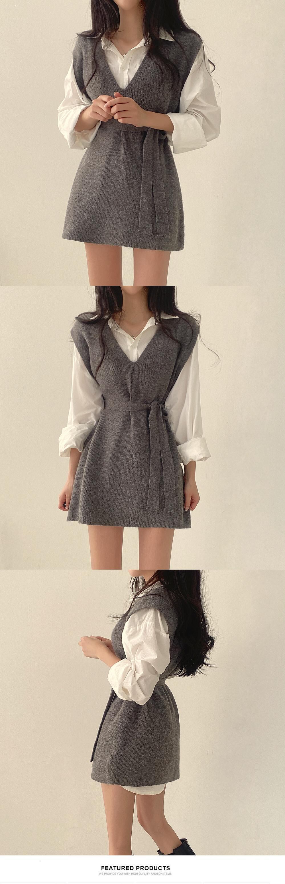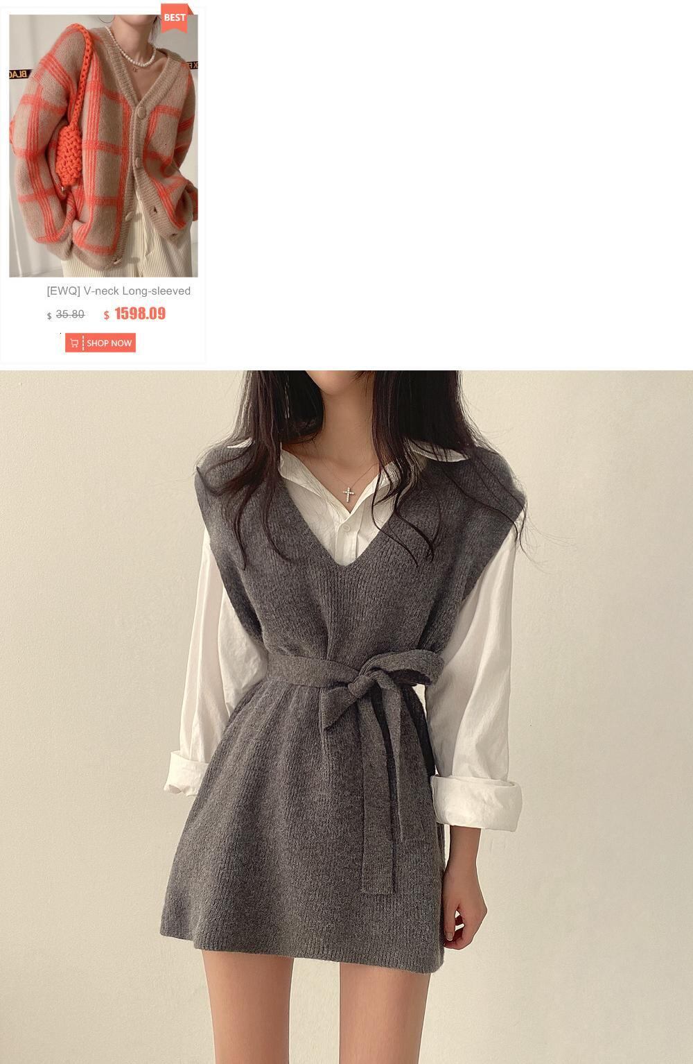 【EWQ】シンプル レディース Vネック レースアップ ウエストニット ベスト プルオーバー ニット シック オールマッチ レディース 春 冬 スプリング 春物 ウィンター 冬物