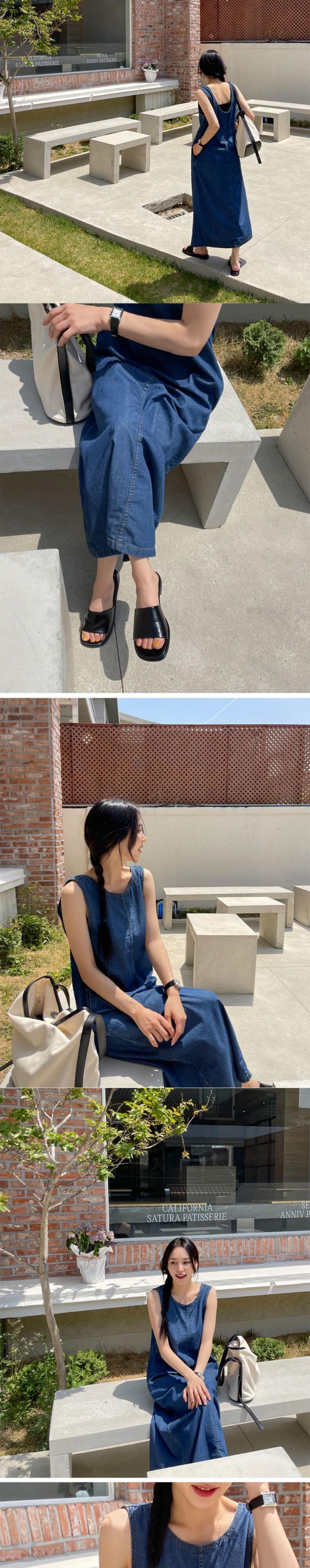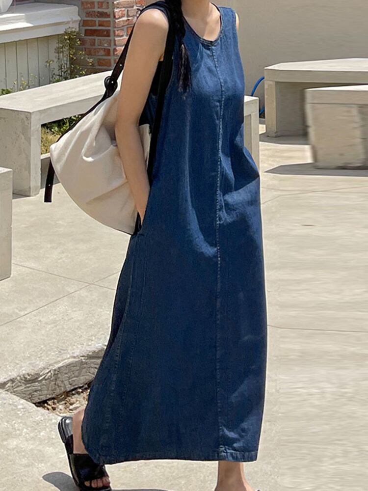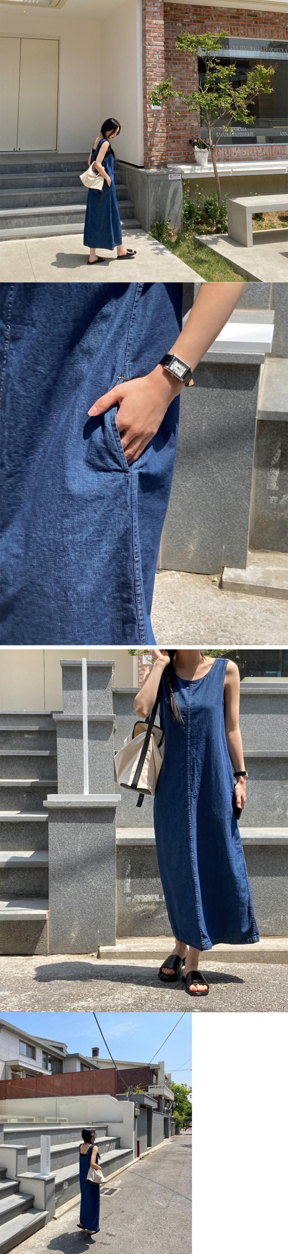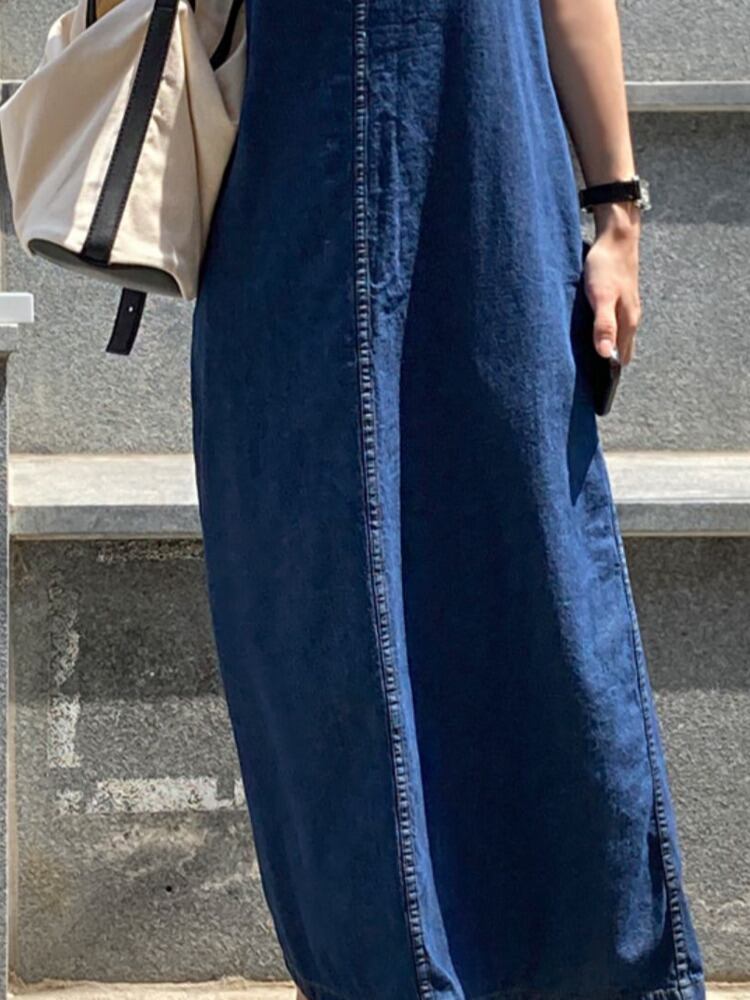[EWQ] デニムバックレスベストドレスパッチワークノースリーブストリートドレス夏 Vestidos 6Y7660 サマー 夏物