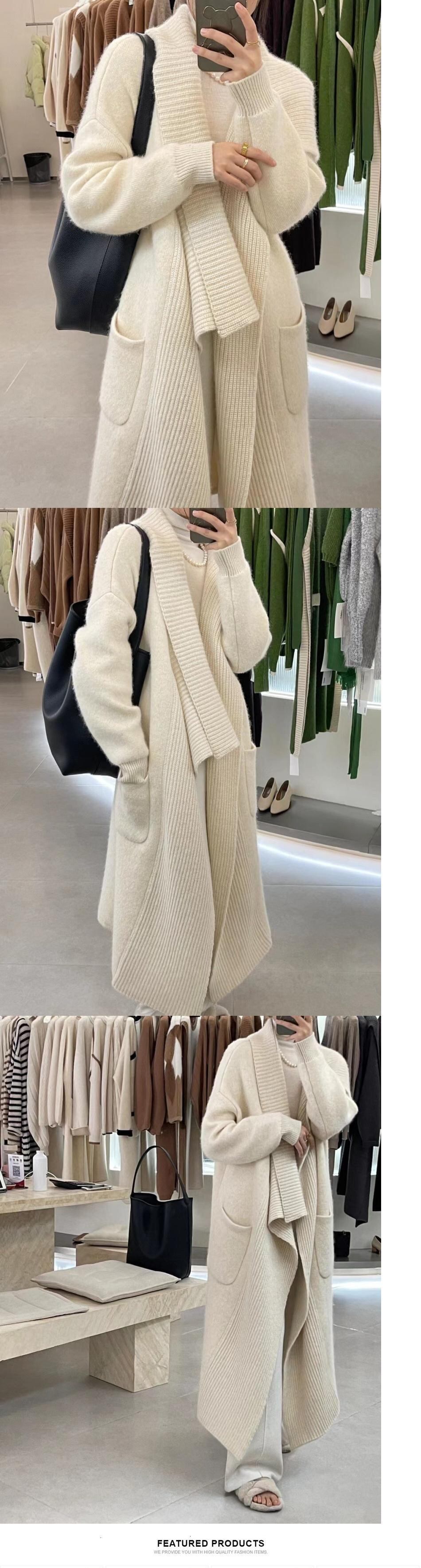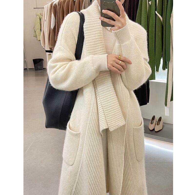 [EWQ] 大きめラペル カーディガン ダブルポケット セーター 春 カーキ 服 レディース ニット トップス ロングコート スプリング 春物