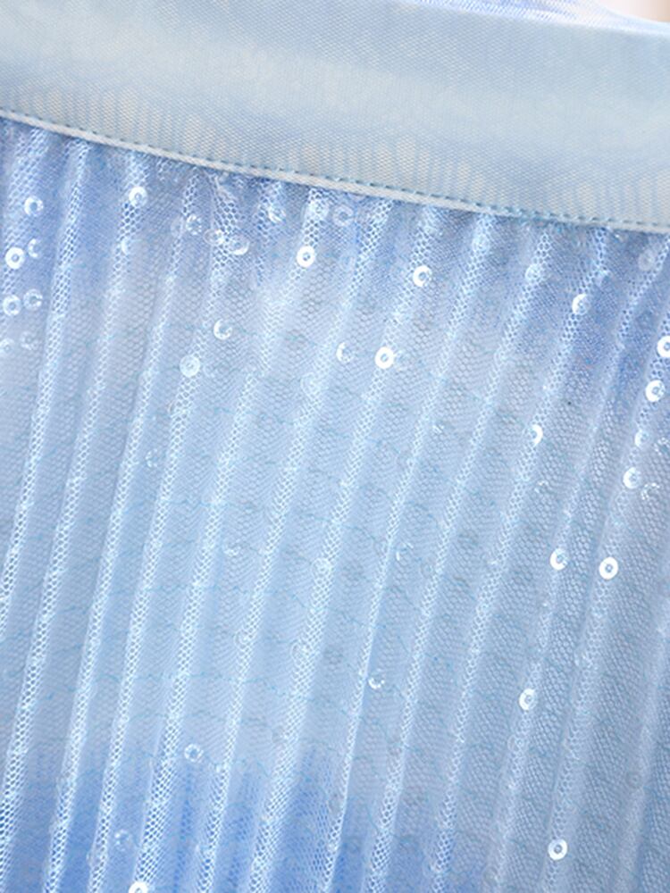 [EWQ] 甘いスパンコールプリーツ A ラインスカート弾性ウエストレインボーコントラストカラーミッドカーフスカート春夏 6Y7867 エラスティック 伸縮 大人ガーリー スウィート キュート カジュアル スプリング 春物 サマー 夏物 Aライン