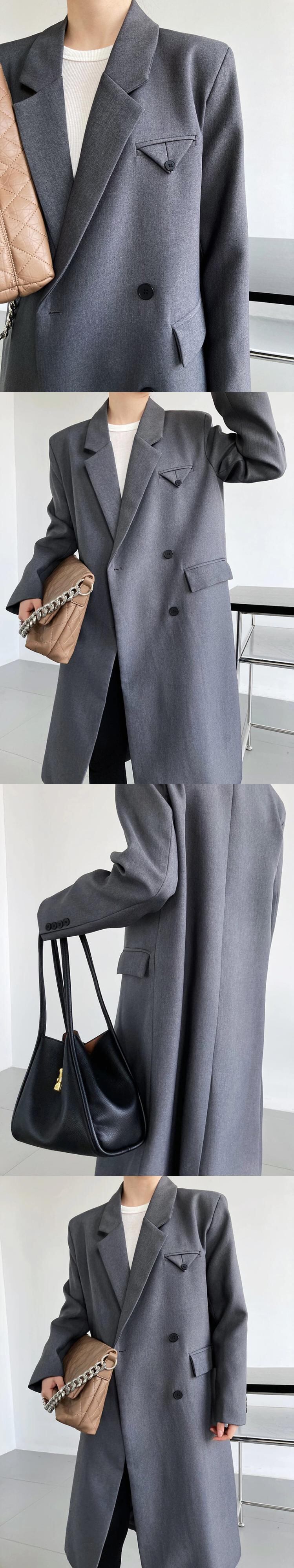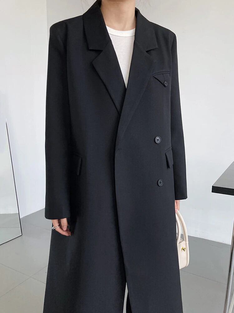 [EWQ] 気質シンプルミディアムロング無地ブレザー秋ノッチシングルブレストスーツコート 16R2088 オータム 秋物 ソリッドカラー