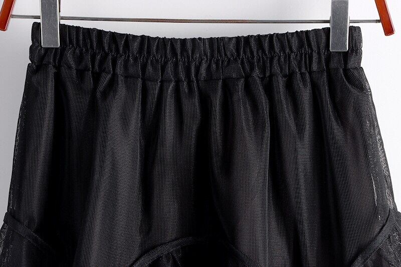 [EWQ] メッシュスプライシング A ラインスカートウエストゴムミッドカーフスカート春夏潮 Faldas 6Y6270 エラスティック 伸縮 スプリング 春物 サマー 夏物 Aライン