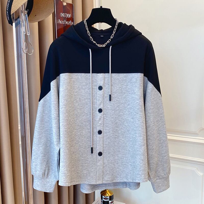[EWQ] シックコントラスト巾着装飾トップス秋フード付きボタン スウェットシャツ潮 16R1331 オータム 秋物