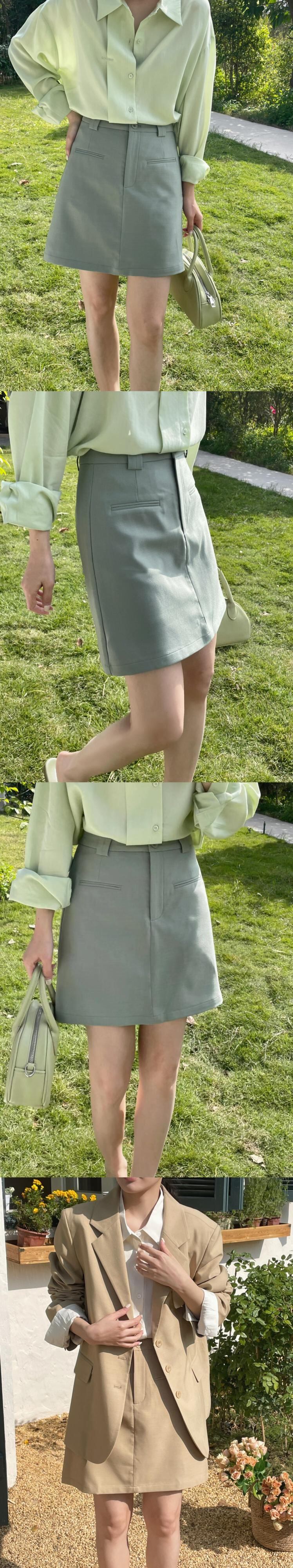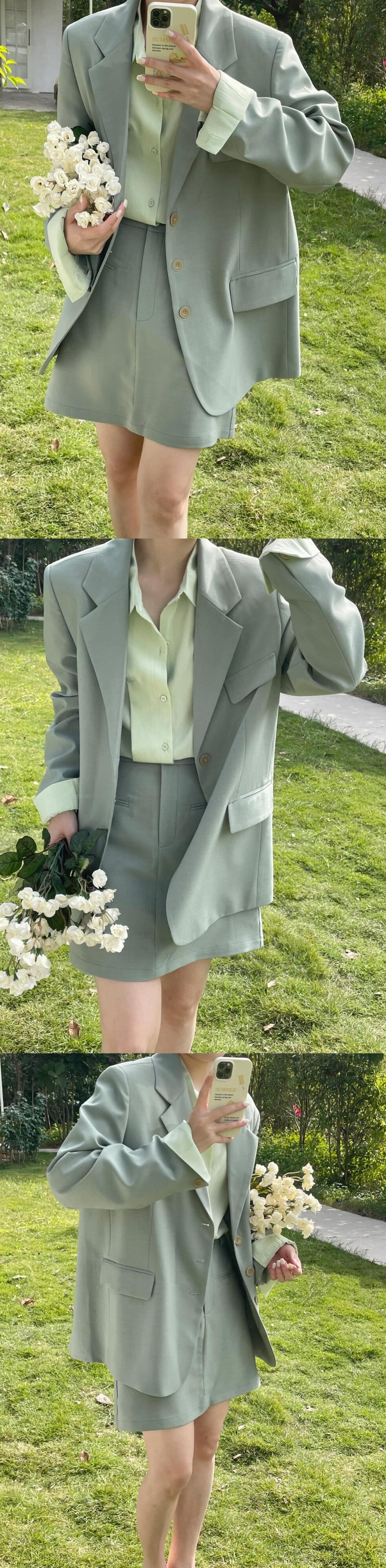 [EWQ] シンプルツーピースセットラペルロングブレザーコート + ウエスト A ラインスカートスーツ春夏スーツ 6Y7014 スプリング 春物 サマー 夏物 Aライン