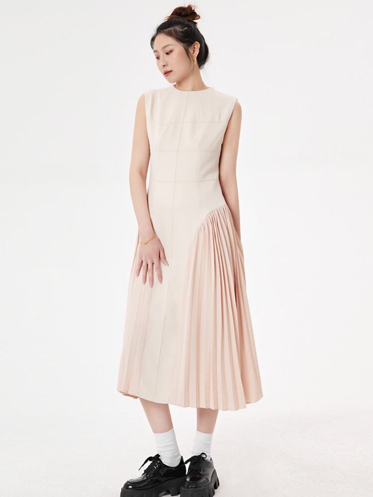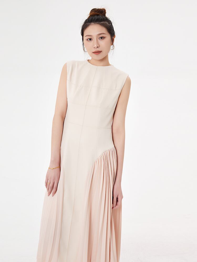 [EWQ] サウジアラビアステッチラインパーティードレス美しいプリーツドレス O ネックパッチワークローブ夏 サマー 夏物 Oネック