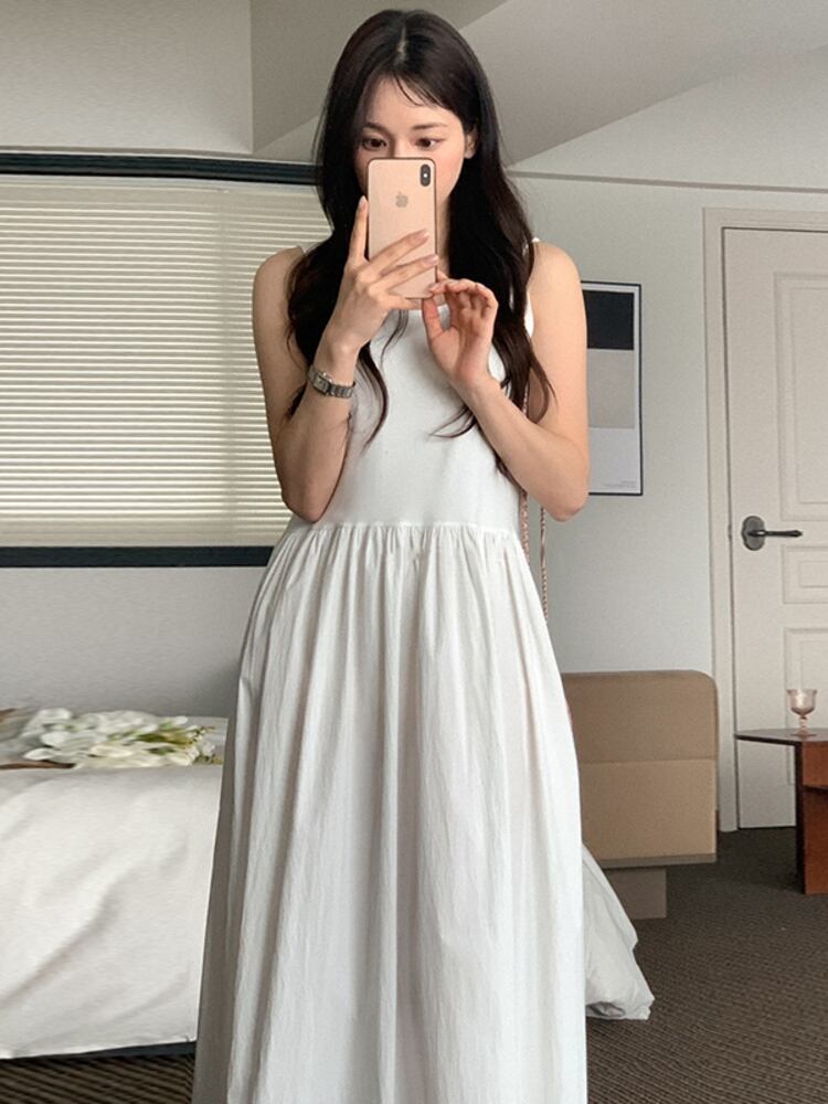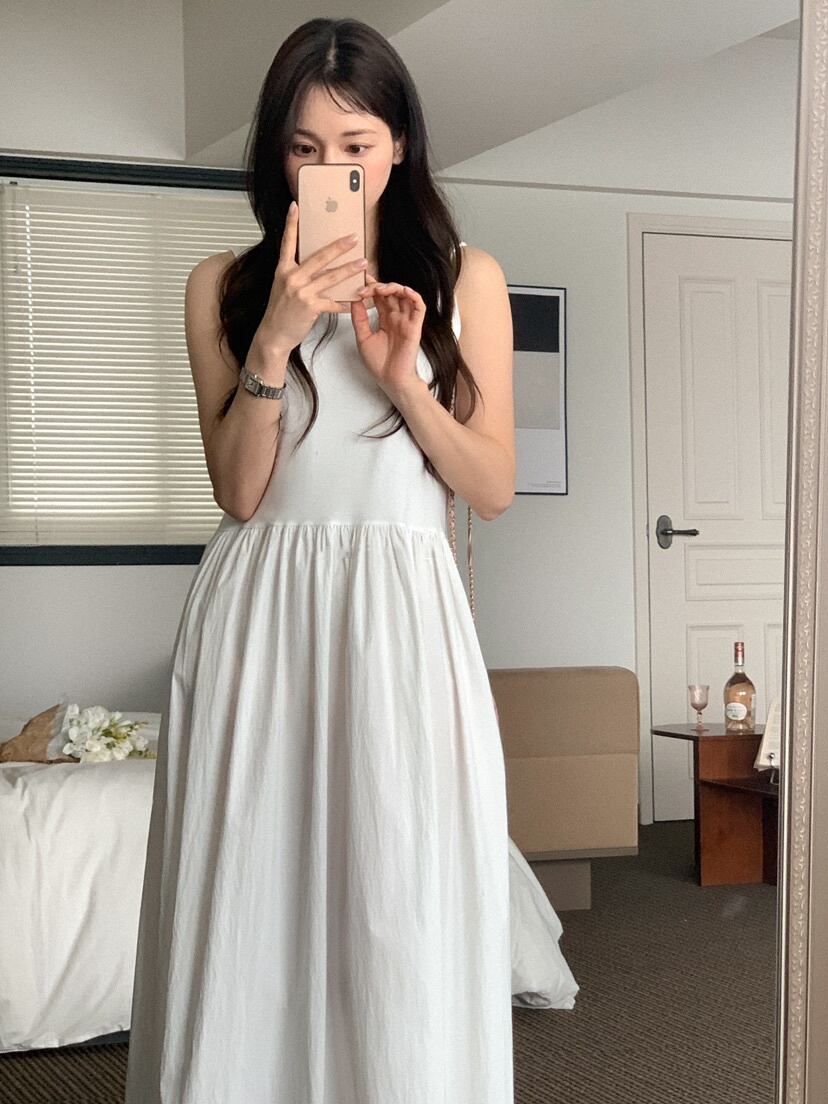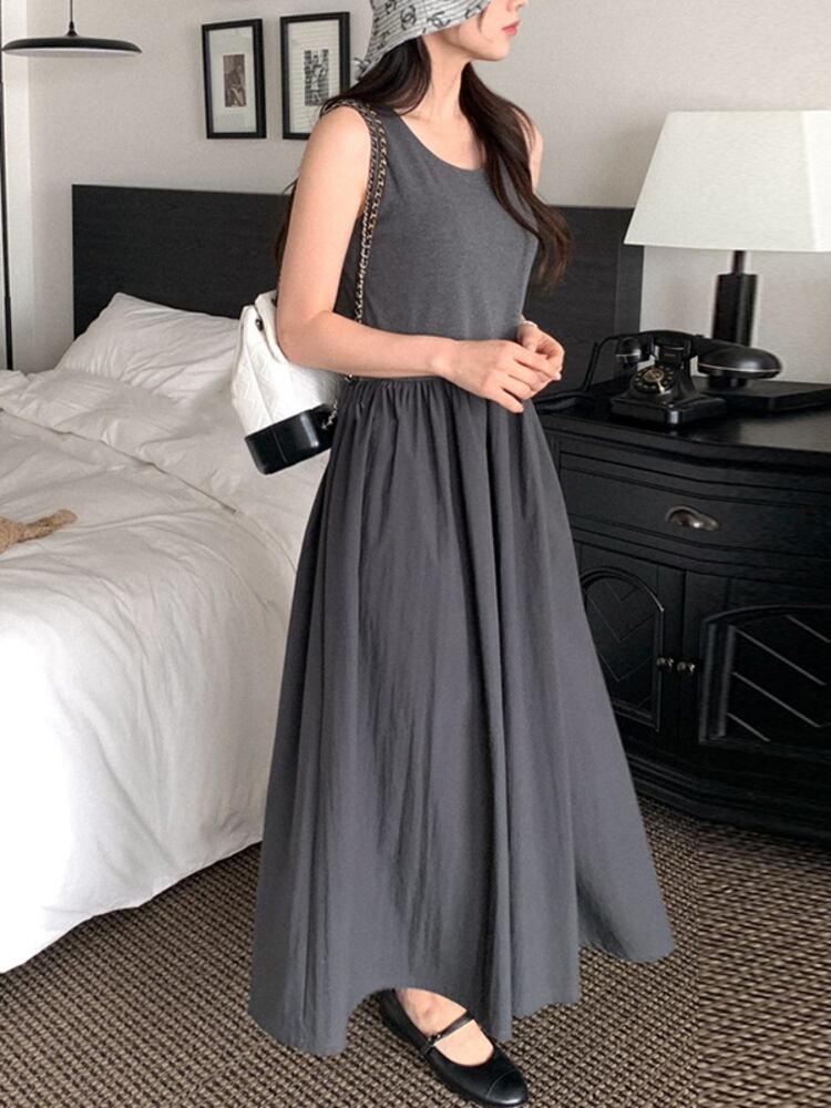 [EWQ]紫スプライス プリーツ ウエスト ベスト ドレス ノースリーブ美しい服ドレス夏潮 Vestidos サマー 夏物 パープル