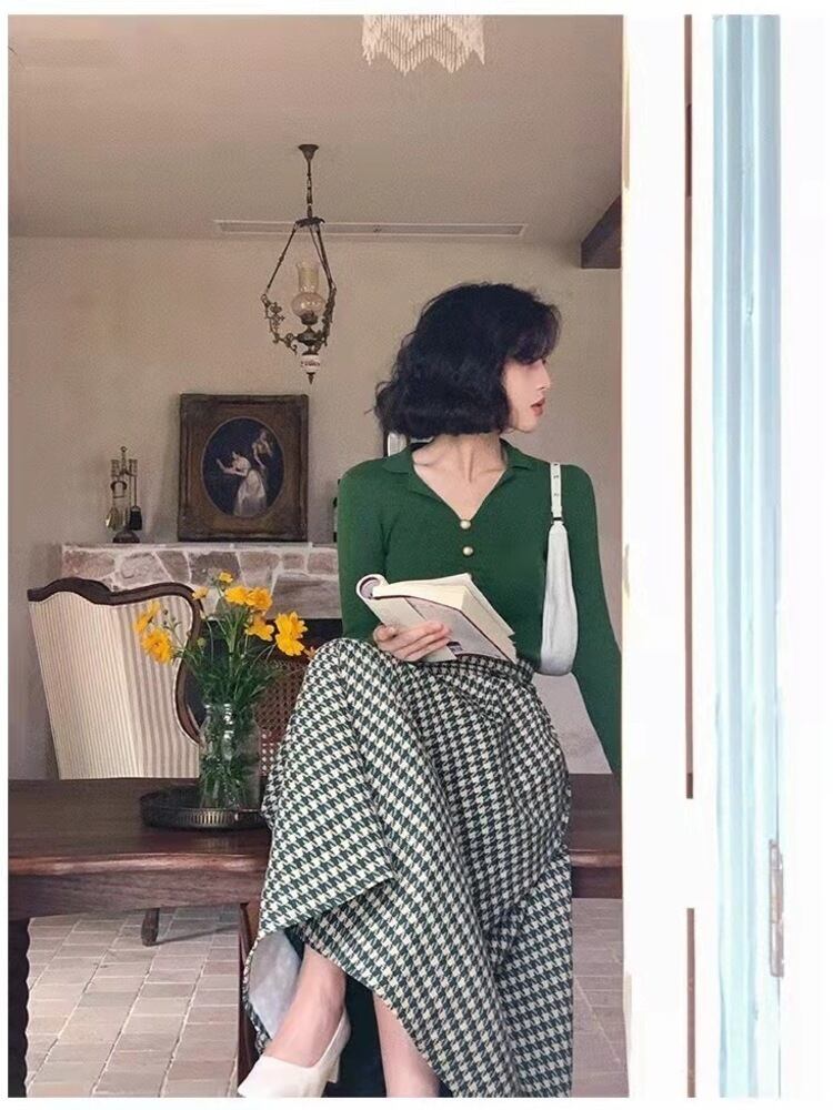[EWQ] レディース チェック柄 Aライン スカート コントラストカラー ミッドカーフ スカート 春夏 シック ファルダス 16Y6291 スプリング 春物 サマー 夏物