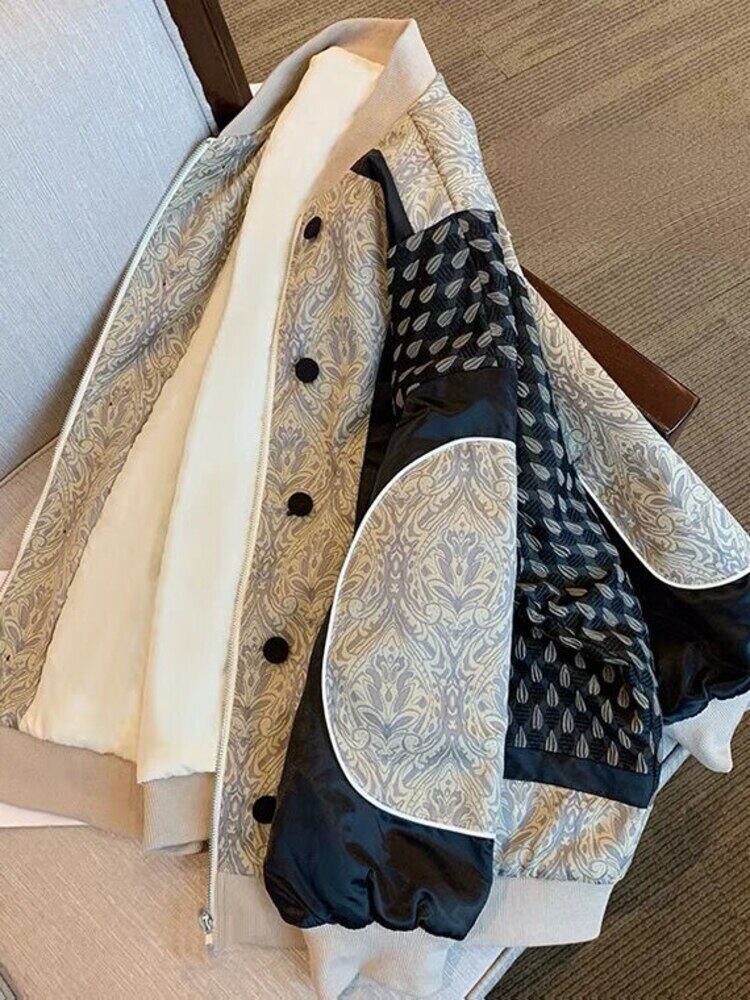 [EWQ] プリントパッチワーク ストリート ヒップホップ オールマッチ ベースボール ジャケット ルーズ トレンド トップ ジャケット 春 16Y5760 スプリング 春物