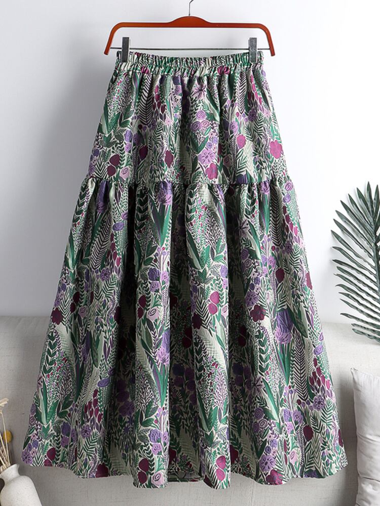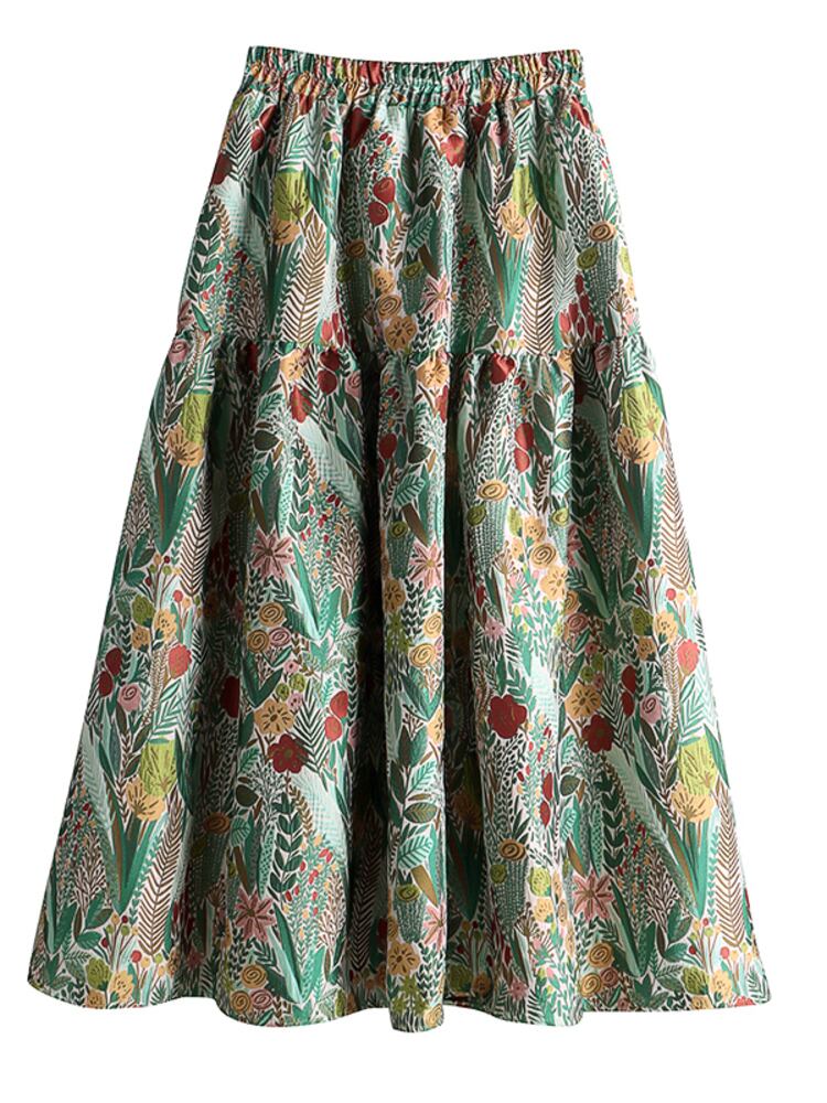 [EWQ] カラー コントラスト スプライシング プリント スカートプリーツ A ライン弾性ジャカード ミッドカーフ スカート春潮 16Y5787 エラスティック 伸縮 スプリング 春物 Aライン