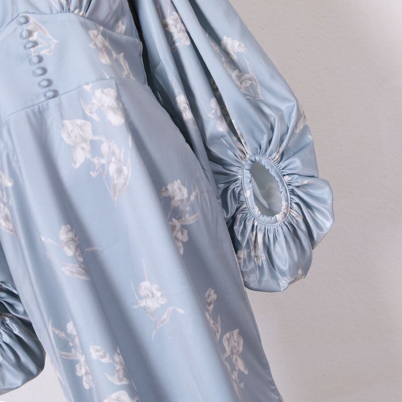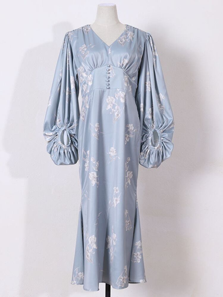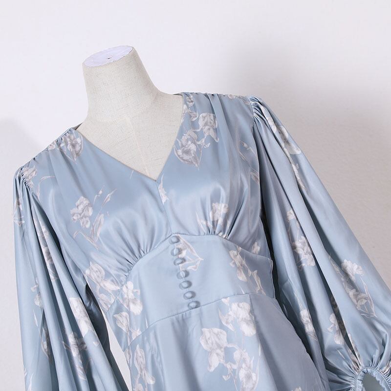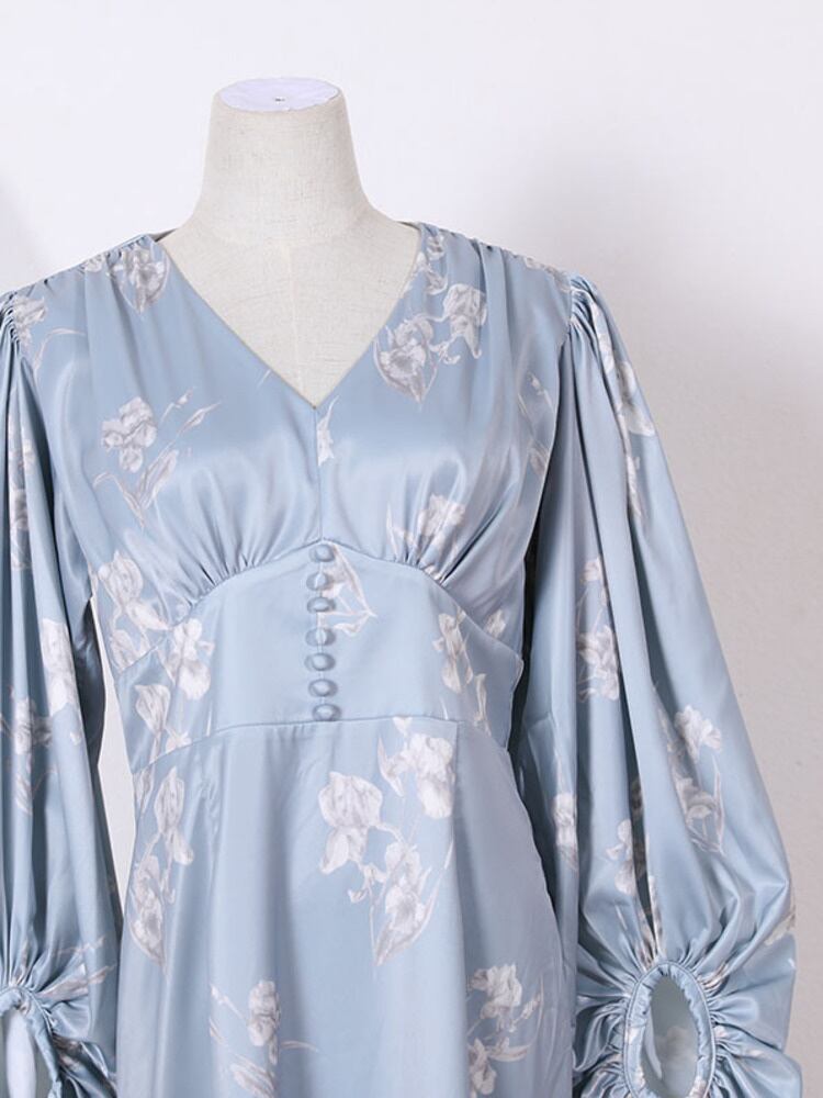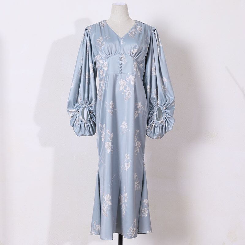 [EWQ] レディース プリントワンピース 夏 Vネック 長袖 スリム マーメイド ミッドスカート Fmeale アパレル 16R300505S ロング サマー 夏物