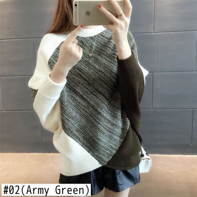 【EWQ】Oネック バットスリーブ セーター 厚手 つぎ トレンド レディース 春 冬 プルオーバー ニット スプリング 春物 ウィンター 冬物