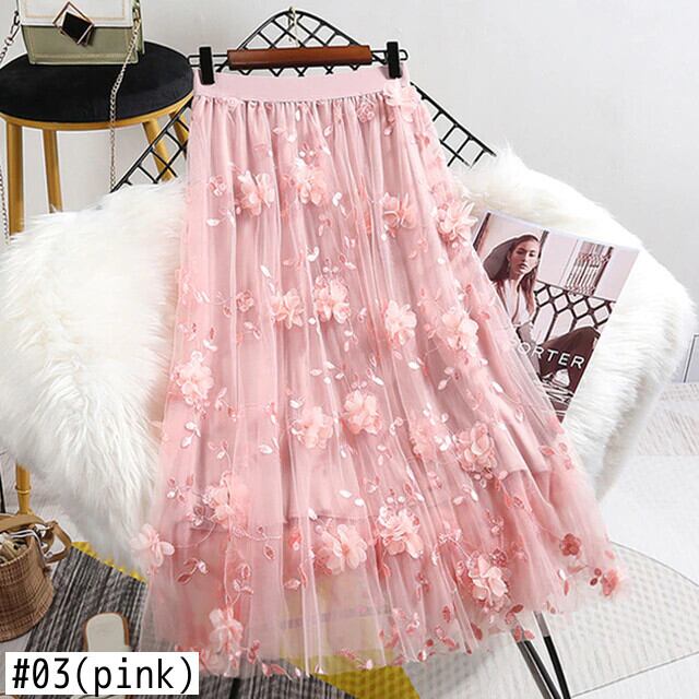 【EWQ】able メッシュ フラワー Aライン スカート キレイめ レディース 伸縮性 ワシット パーティースカート 春 夏 潮 16Y6135 エラスティック スプリング 春物 サマー 夏物 フラワーデザイン