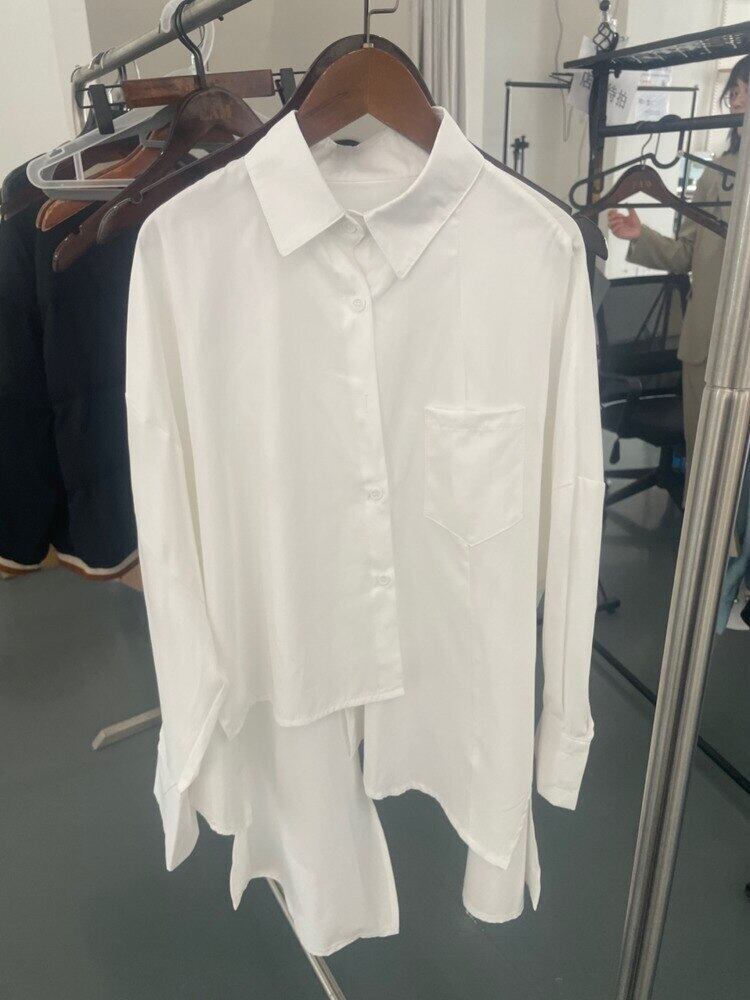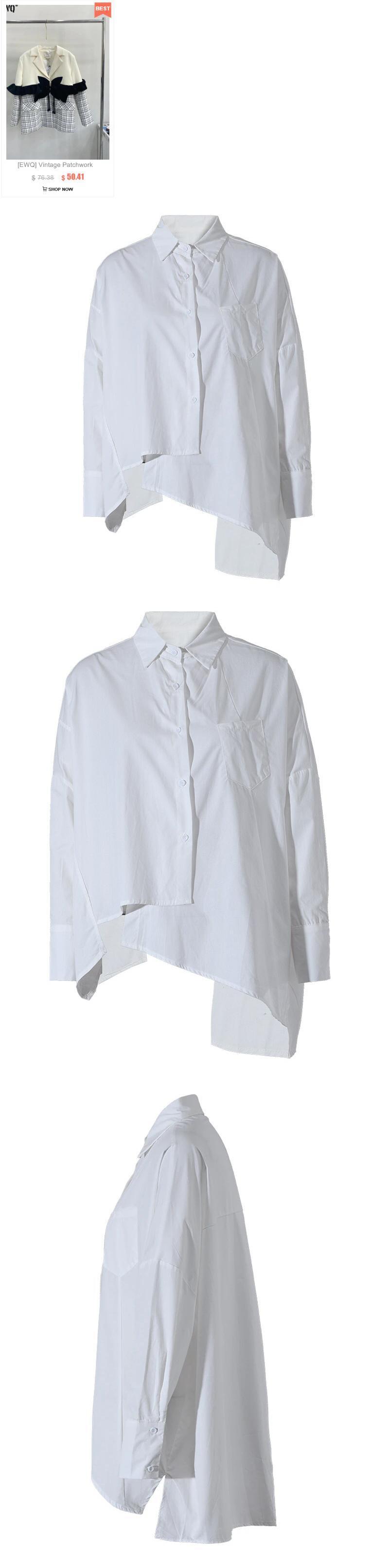 【EWQ】シックビッグサイズブラウスラペル長袖ルーズフィットシャツ春秋白服イレギュラーヘム ロング ホワイト スプリング 春物 オータム 秋物