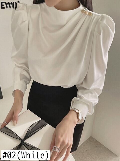 【EWQ】シック レディース ホワイト 長袖 シンプル オフィスシャツ 春キレイ 16Y73090 ロング スプリング 春物 会社 学校 通勤や通学にも