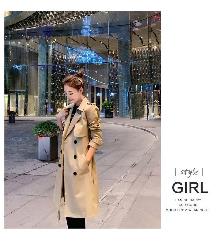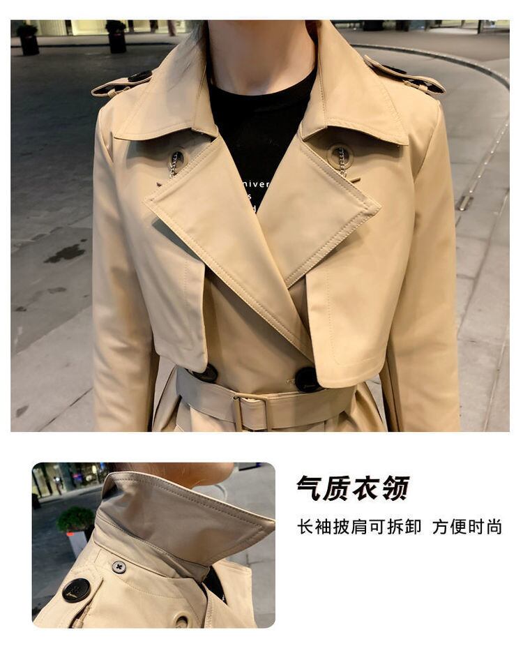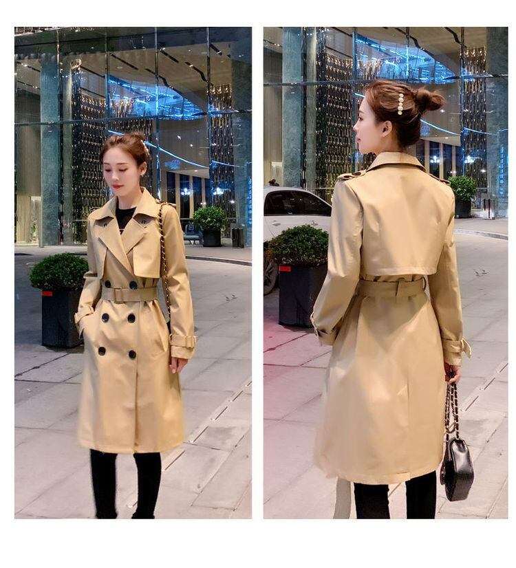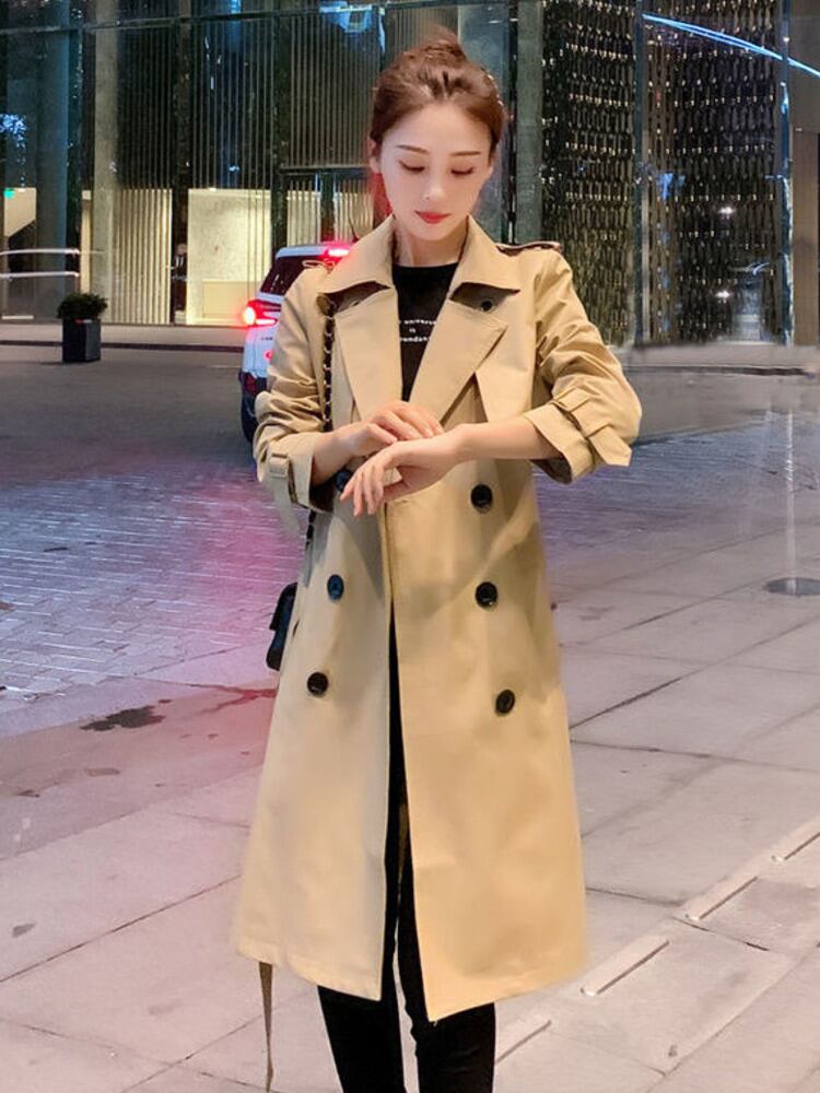 [EWQ] 2 点セットカーキ トレンチ コート ロング ソリッド ウインドブレーカー ブラック カーキ トップス 16Y386 ソリッドカラー