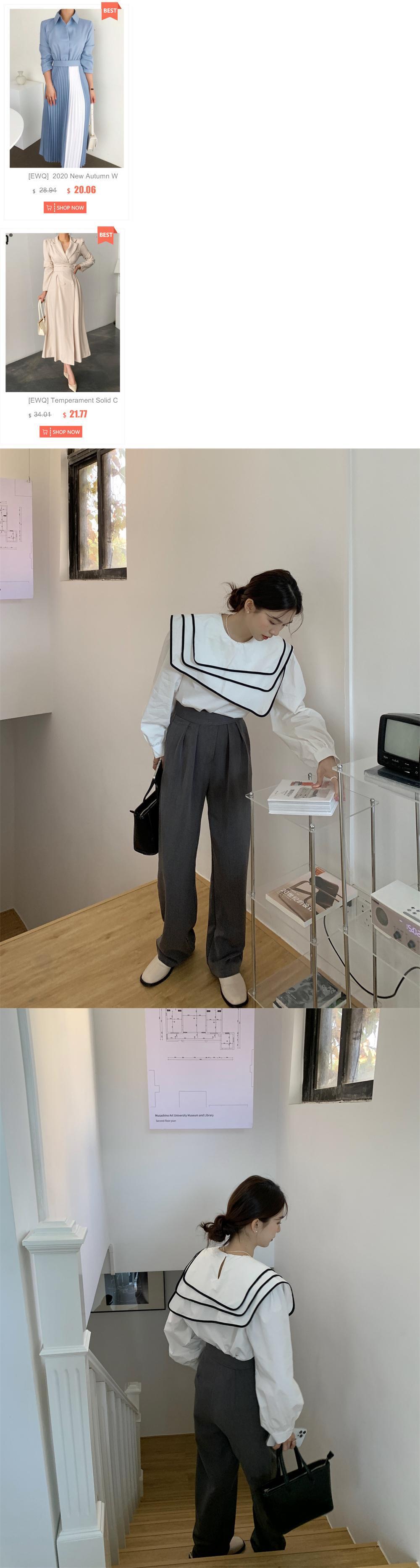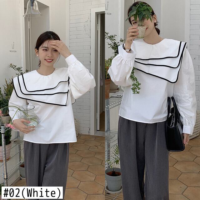 [EWQ] 甘いコントラスト エッジ三層セーラー襟不規則プルオーバー トップスルーズ ランタン スリーブ シャツ 16R2063 ランタンスリーブ 大人ガーリー スウィート キュート カジュアル