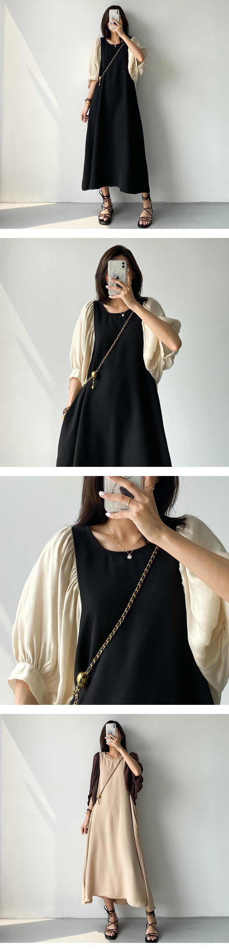 [EWQ] パフスリーブパッチワークバック中空アウトドレスコントラストスプライシング緩い特大ドレス春潮 Vestidos スプリング 春物