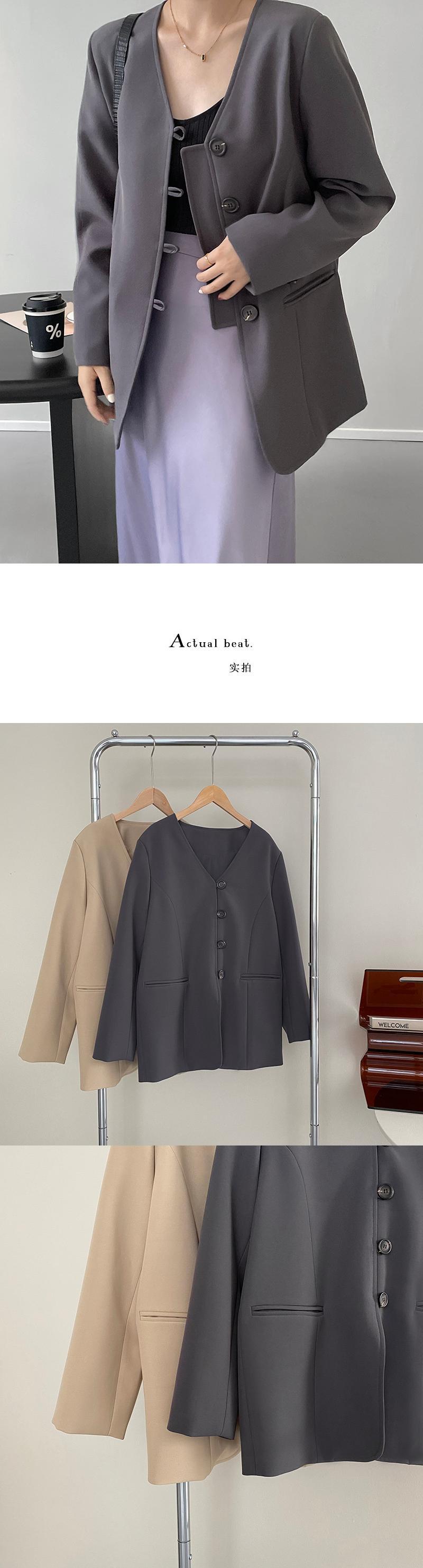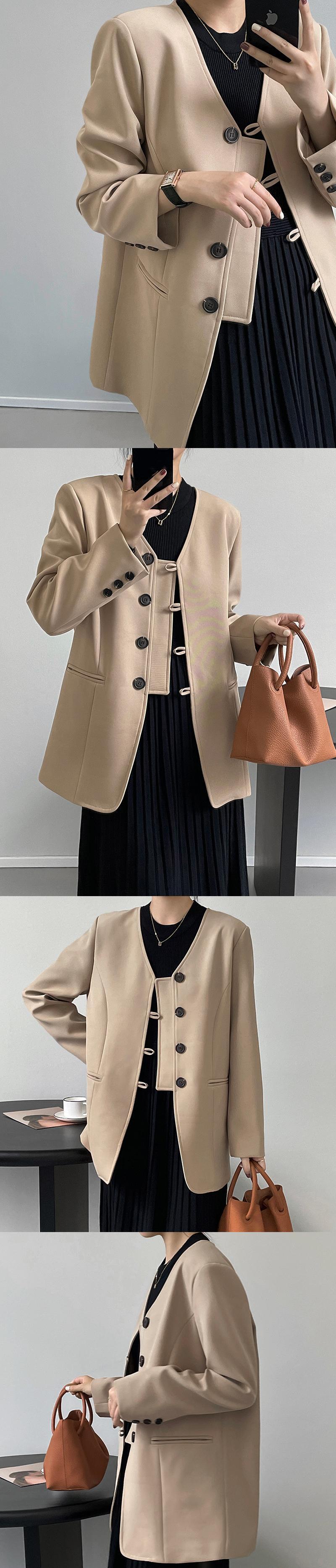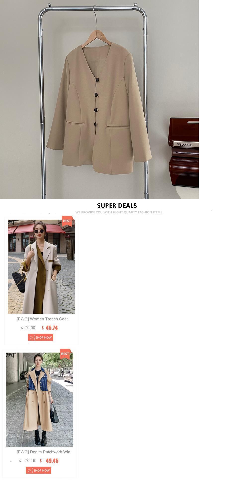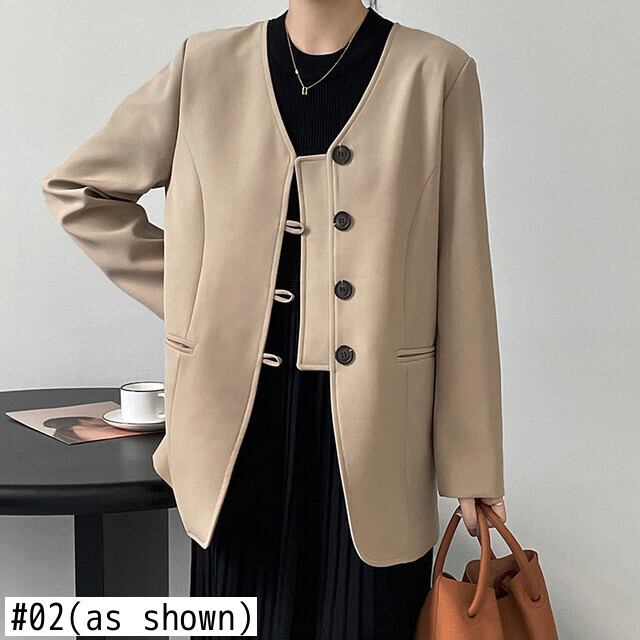 【EWQ】ノーカラー ブレザー 長袖 シンプル シック スーツ ジャケット 春 春 ロング スプリング 春物