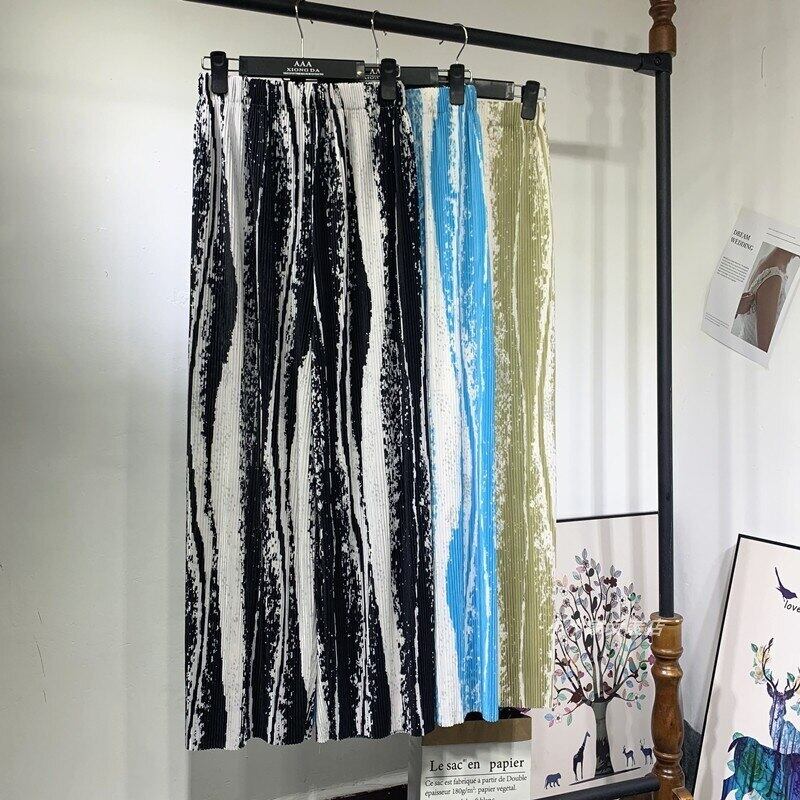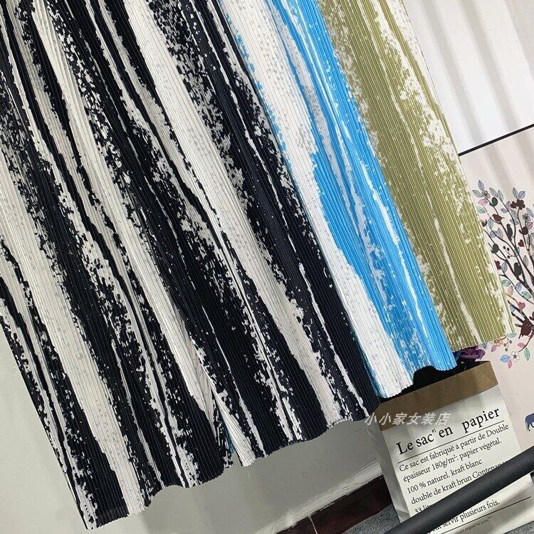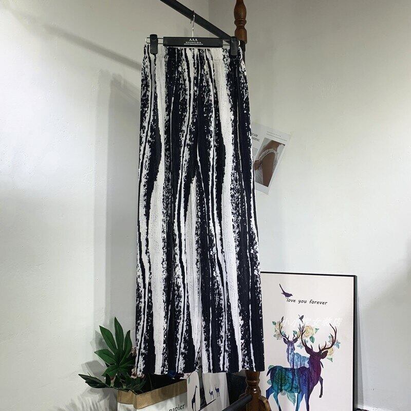 [EWQ] タイダイストライププリーツワイドレッグパンツ春夏ウエストコントラストカラーストレートパンツ 153 スプリング 春物 サマー 夏物 ワイドパンツ