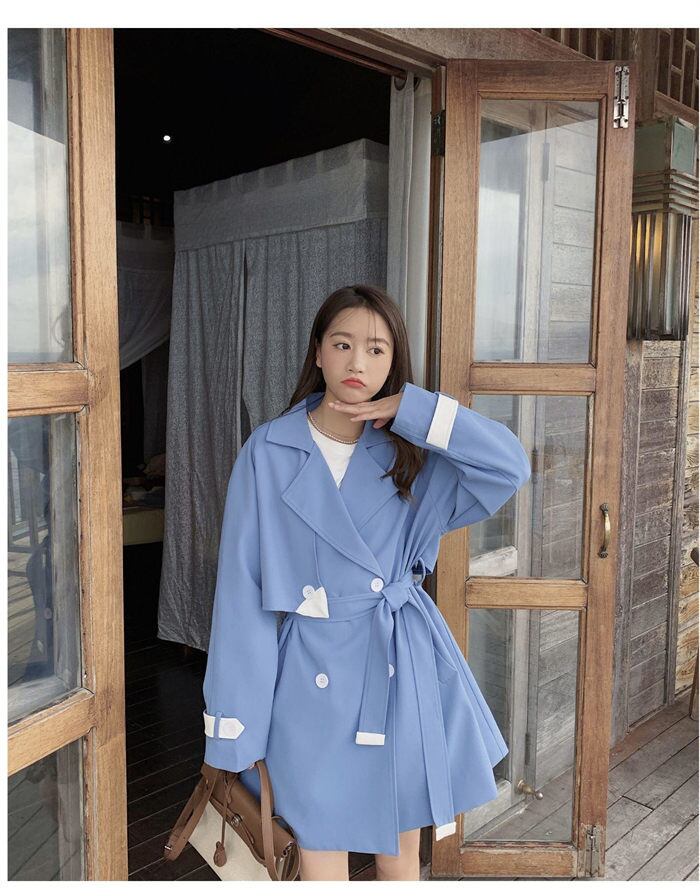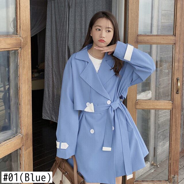 【EWQ】パッチワーク ダブルブレスト トレンチコート レディース スーツカラー スプリング ウインドブレーカー レディース 春物