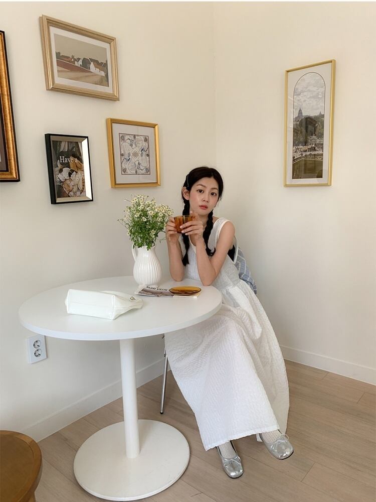 [EWQ] 甘いルース ベスト ドレス シック O ネック ノースリーブ ドレス夏美しいローブ Y7258 大人ガーリー スウィート キュート カジュアル サマー 夏物 Oネック