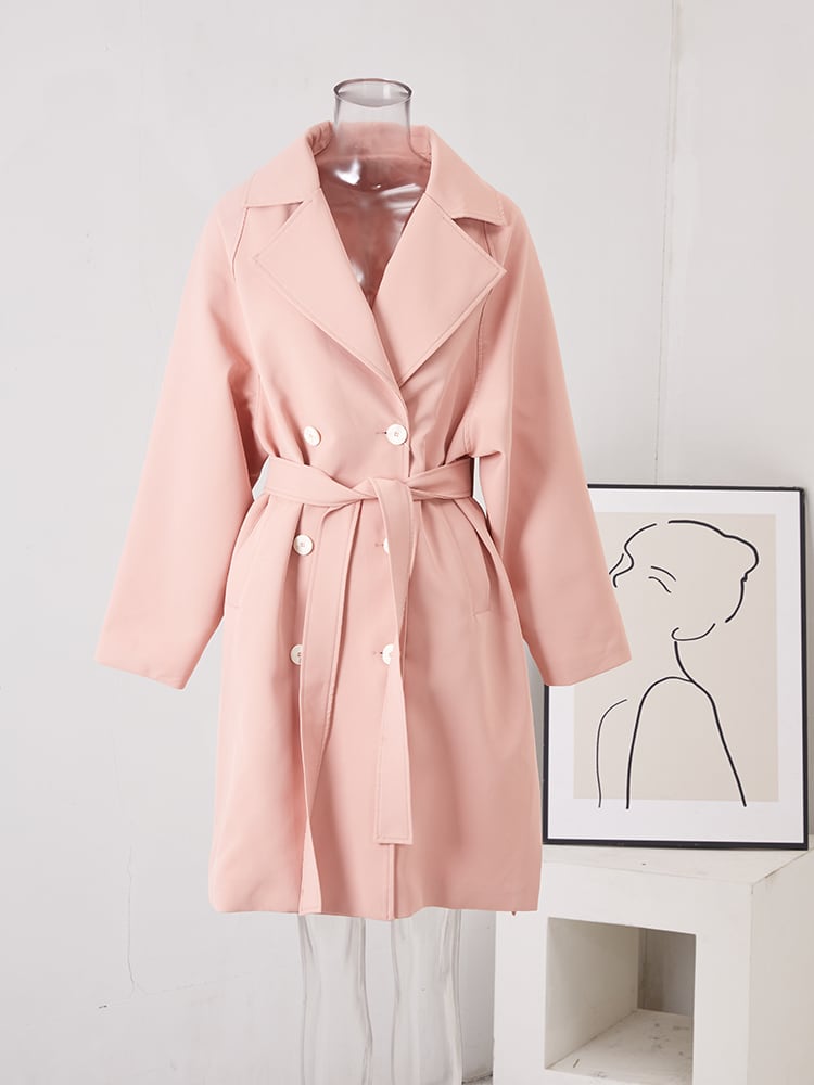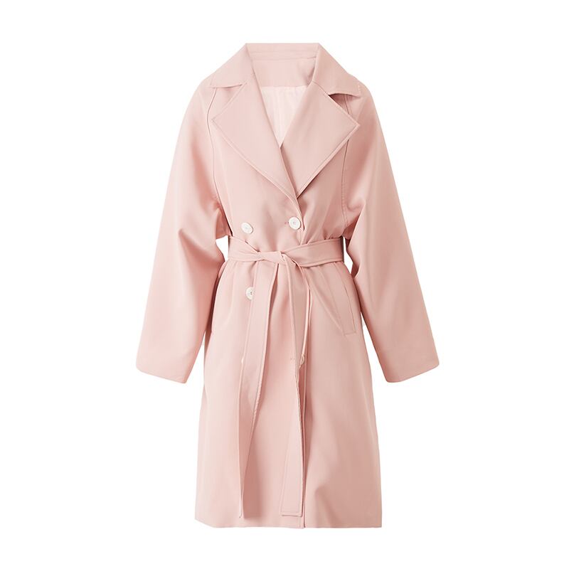 【EWQ】甘ゆるい秋秋トレンチコート レディース ダブルブレスト 無地 ロング丈 ウインドブレーカー 大人ガーリー スウィート キュート カジュアル オータム 秋物 ソリッドカラー