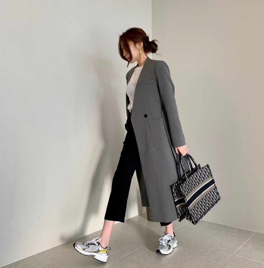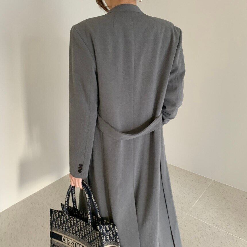 [EWQ] シックトレンド V ネック シングルブレスト ミニマリスト長袖ブレザー トップ春 16E2449 ロング スプリング 春物 Vネック