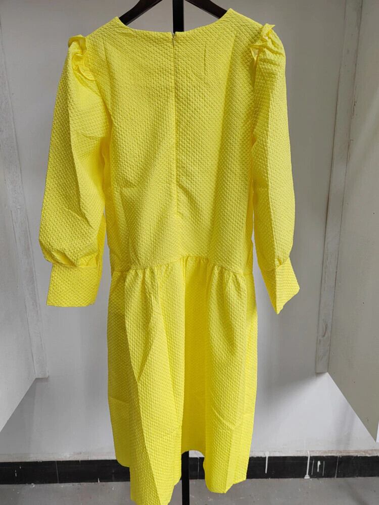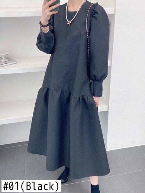【EWQ】シック 無地 ラウンドネック 立体飾り ゆったり つぎ ロングドレス スプリング 16T334 春物 Oネック ソリッドカラー