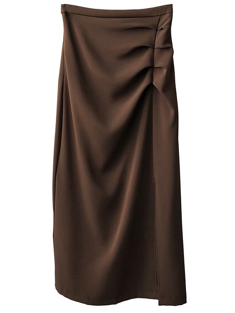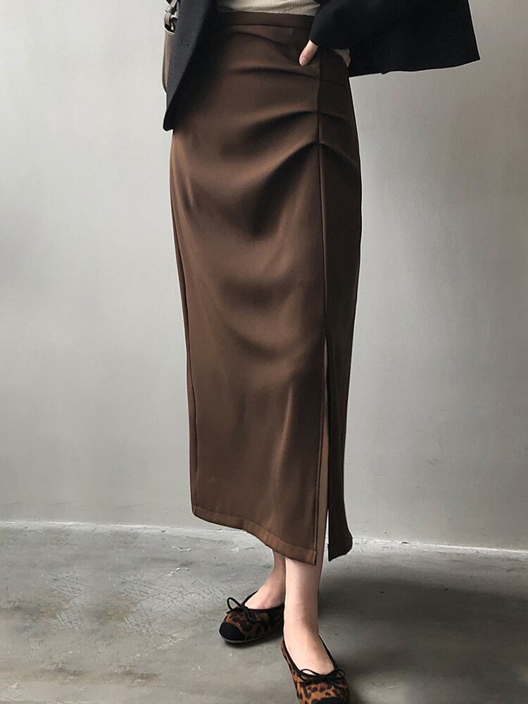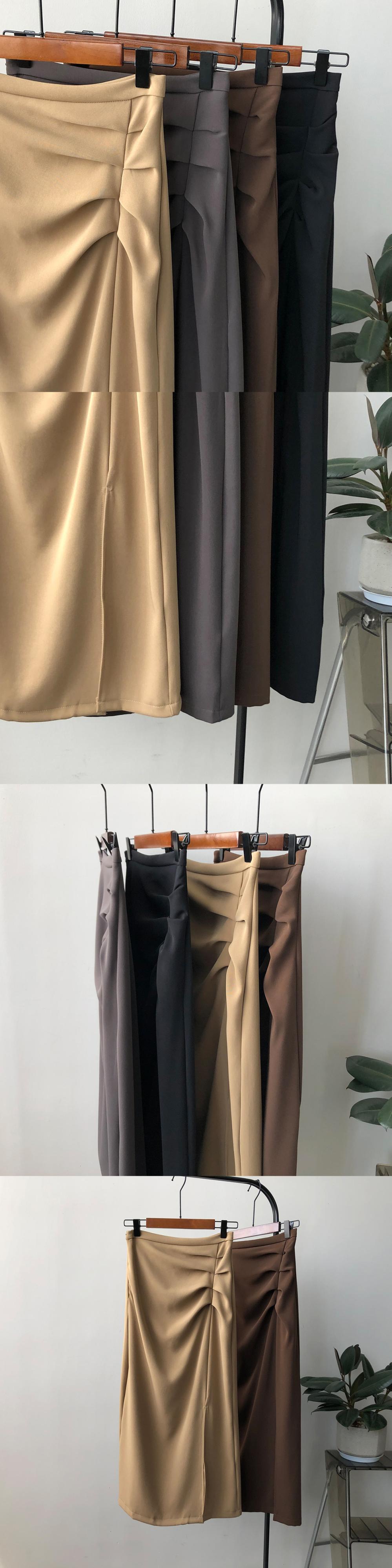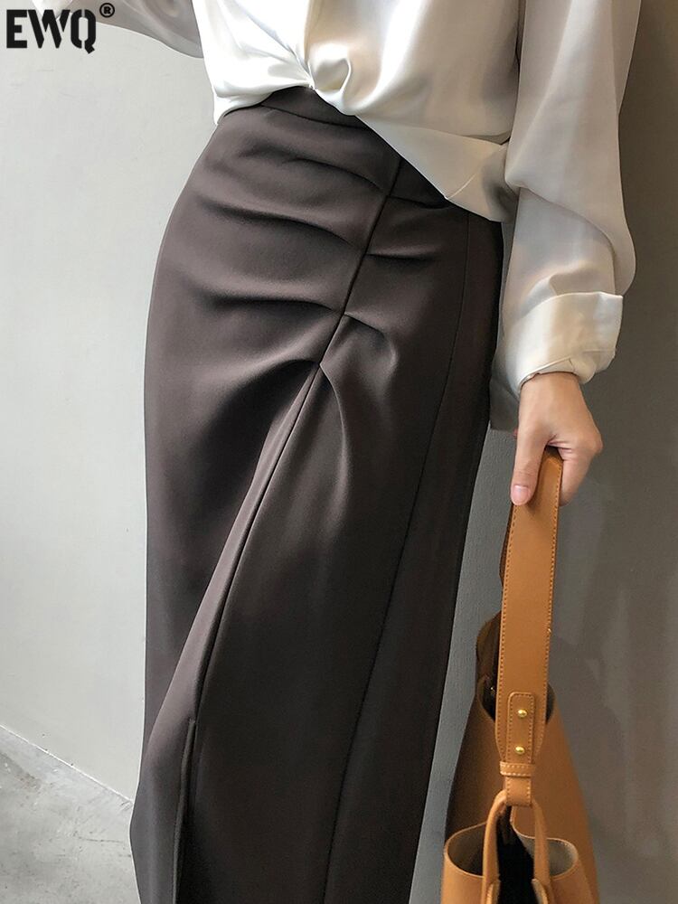 [EWQ] 吹きプリーツスカートサイドスプリット弾性ミッドカーフスカート春夏ファルダオールマッチ服 エラスティック 伸縮 スプリング 春物 サマー 夏物