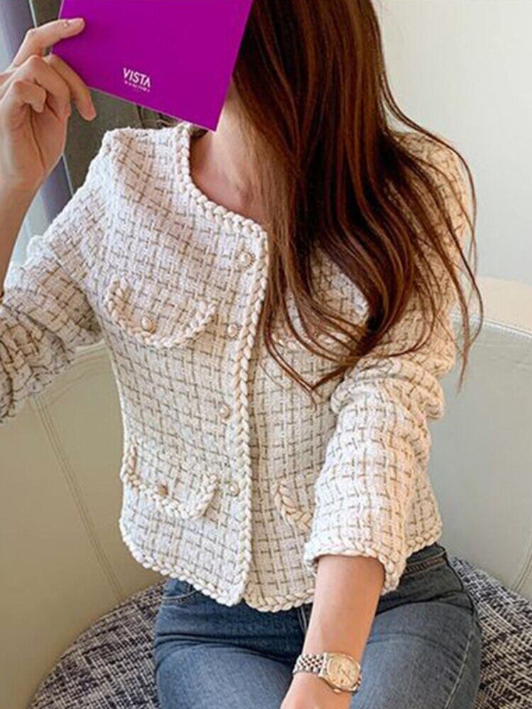[EWQ] シック春新しいレトロ長袖ルーズ ジャケットオーバー ツイード ジャケット アウター 16Y2427 ロング スプリング 春物