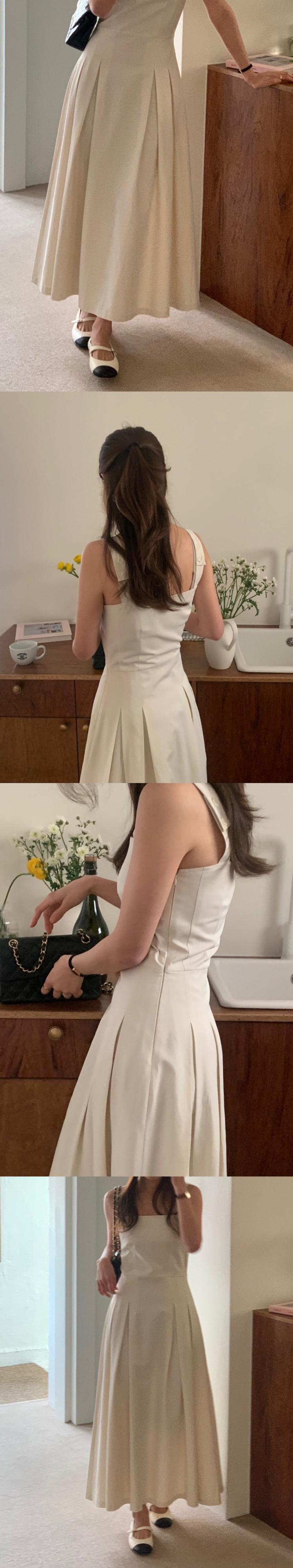 [EWQ] スクエアカラー プリーツ レディース ベストワンピース 無地 カジュアル ノースリーブワンピース 夏物 オールマッチ服 61 サマー ドレス ソリッドカラー スクウェア