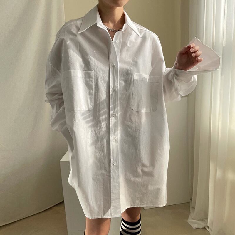 [EWQ] レディース ブラウス シャツ 長袖 綿 青 白 ブラウス トップス ゆったり ロング レディース ブラウス シャツ ホワイト ブルー コットン